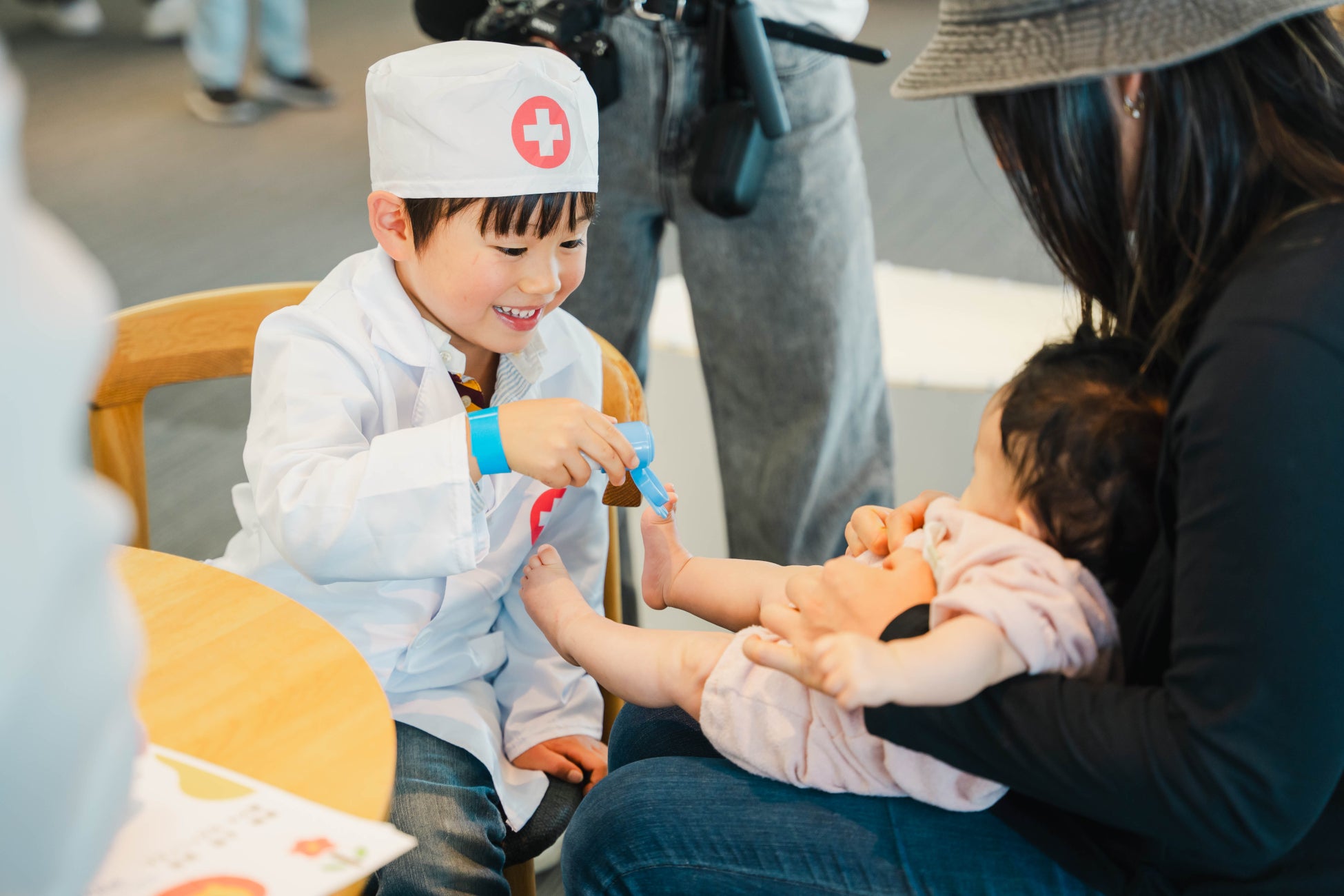 本イベントでは400名を超える親子が来場し、浜松町ビルディングを舞台に各企業が出展ブースを提供。来場した子どもたちは、お医者さん体験、郵便局体験、キーホルダーづくり、水中ドローンゲームなど様々なコンテンツをスタンプラリー形式で体験しました。