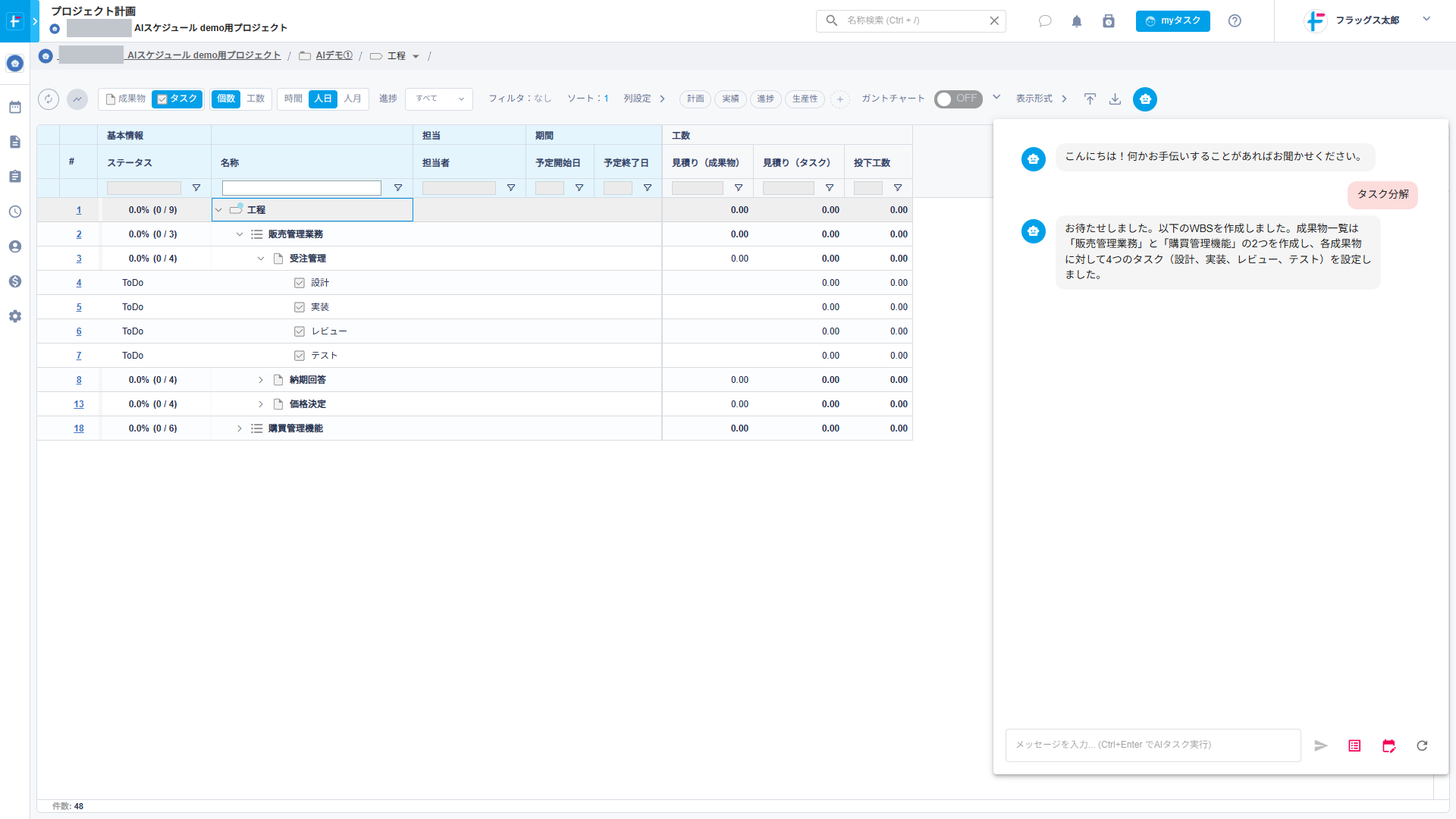 ・タスク割り当て時の負荷チェック:WBS作成時に期間の集中を確認し、無理のない計画へ修正できる