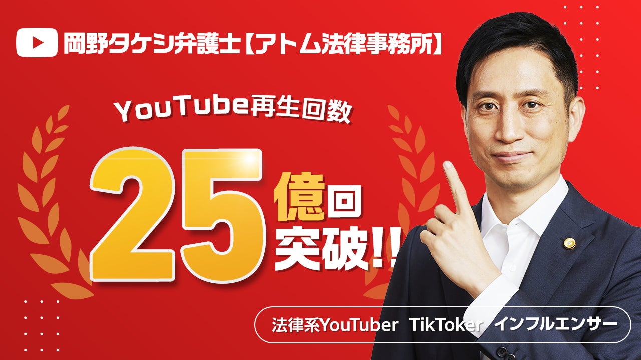 法律系YouTuber『岡野タケシ弁護士【アトム法律事務所】』のYouTube動画再生回数が累計25億回を突破しました!