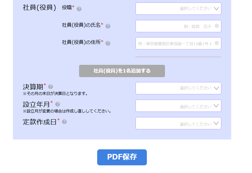 続いて社員や決算期などの情報もひな型に沿って入力し、PDFとして保存してください。