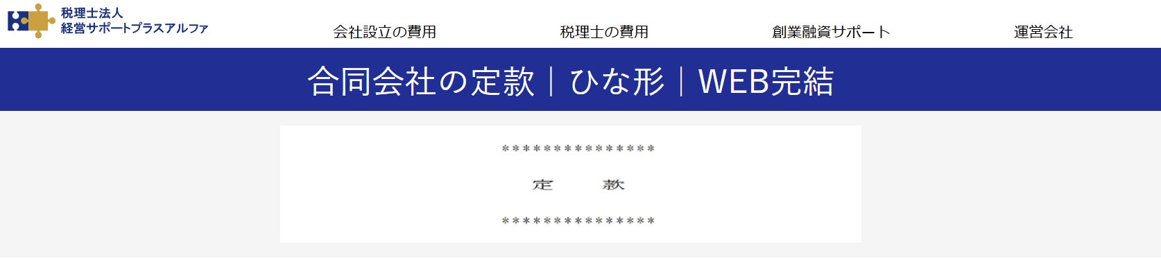 合同会社の定款|ひな形URL:https://keiei-support-plus-a.com/kaisha-setsuritsu/goudougaisha-teikann-hinagata/