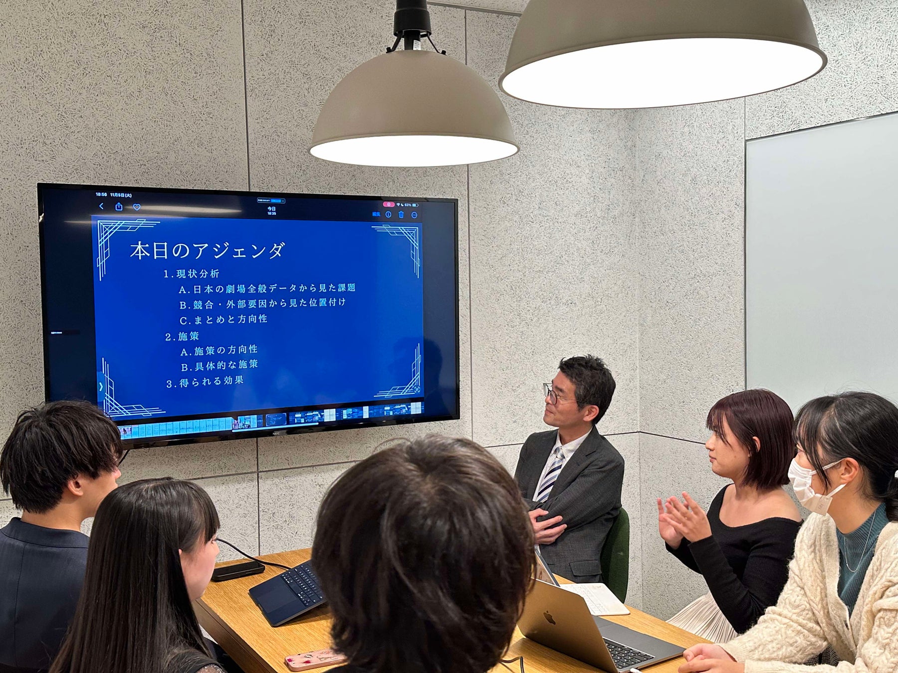 プレゼン当日は、株式会社ホリプロの小嶋様、そして現在当舞台のマーケティング戦略のコンサルティングを行なっている株式会社WonderConsulting(当社グループ会社)の代表の丸山に対して、実際に提案。学生達は、プロのマーケターからの戦略に対する考え方や、実務的な観点から見た実現可能性など、学校の授業では分からないリアルなマーケティングについて教えてもらいました。