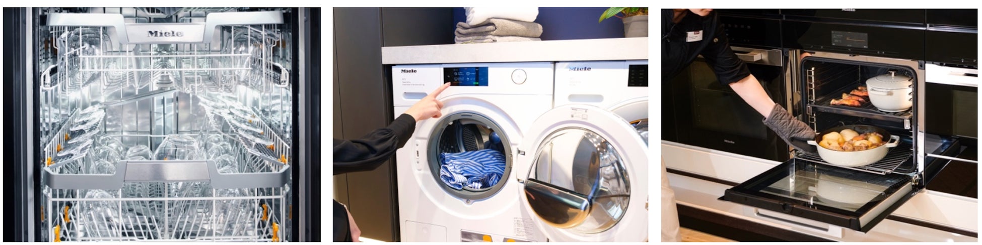 今回の「Mieleへ行こう 〜『Mieleのある暮らし』の特別体験〜」は、Miele製品の魅力を全国の方々に広く知っていただきたいとの思いから、企画いたしました。Mieleが気になっていた方をはじめとした多くの方にお近くのMiele店舗での製品体験や、スタッフとの交流を通して、身近に感じていただく機会にしたいと考えております。当イベントでは、必要最小限の水と電力で高い洗浄力を実現する食器洗い機や、衣類の汚れを落とすだけでなく素材に応じて優しくケアしながら洗濯・乾燥を行うランドリー機器、パワフルな吸引力・きれいな排気・洗練されたデザインを兼ね備えた掃除機等を実際にご体験いただけます。食器洗い機では、普段見ることができない庫内の洗浄工程を、透明パネルを使って実際にご覧いただき、ランドリー機器では、タオルのふんわりとした乾燥仕上がりのデモや毎日のお洗濯に最適なプログラムのご紹介、掃除機ではしっかりゴミを吸ってキレイな排気を出すというシンプルながら驚くべき実力をお試しいただけます。また、毎日のお食事からおもてなし料理まで最上の仕上がりを叶えるMieleオーブンを使用した「クッキングデモ」を実施。同時調理やスチーム調理、レンジ調理などといったオーブンの様々な活用法や特長をご紹介し、皆様にご試食もしていただきながら、オーブン料理のポイントをお伝えします。