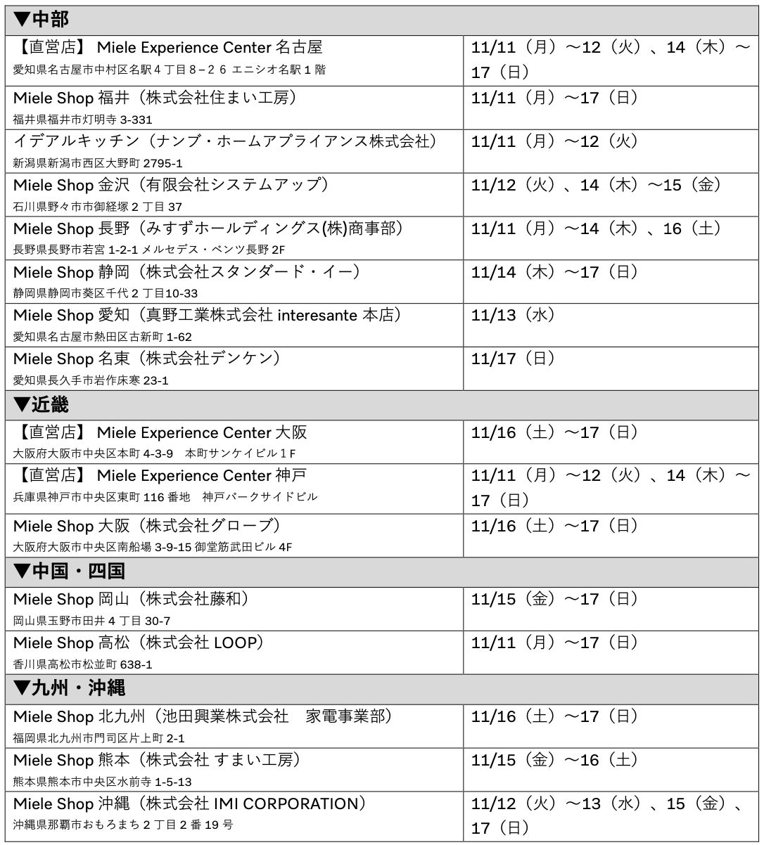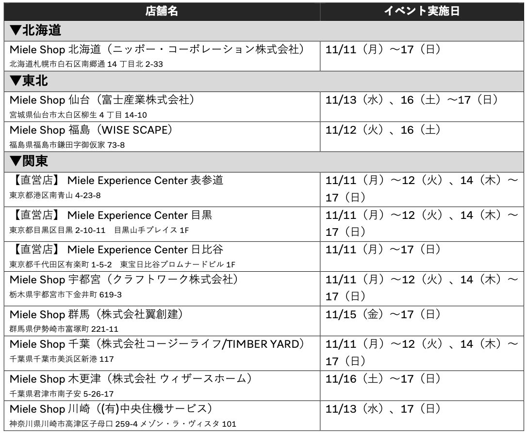 (※期間内で、店舗によってイベントの実施日や内容、予約制か予約不要かなど異なる場合がございますので、イベント特設サイトをご確認ください。詳細はこちら。https://life.miele.co.jp/lp/go_miele/)