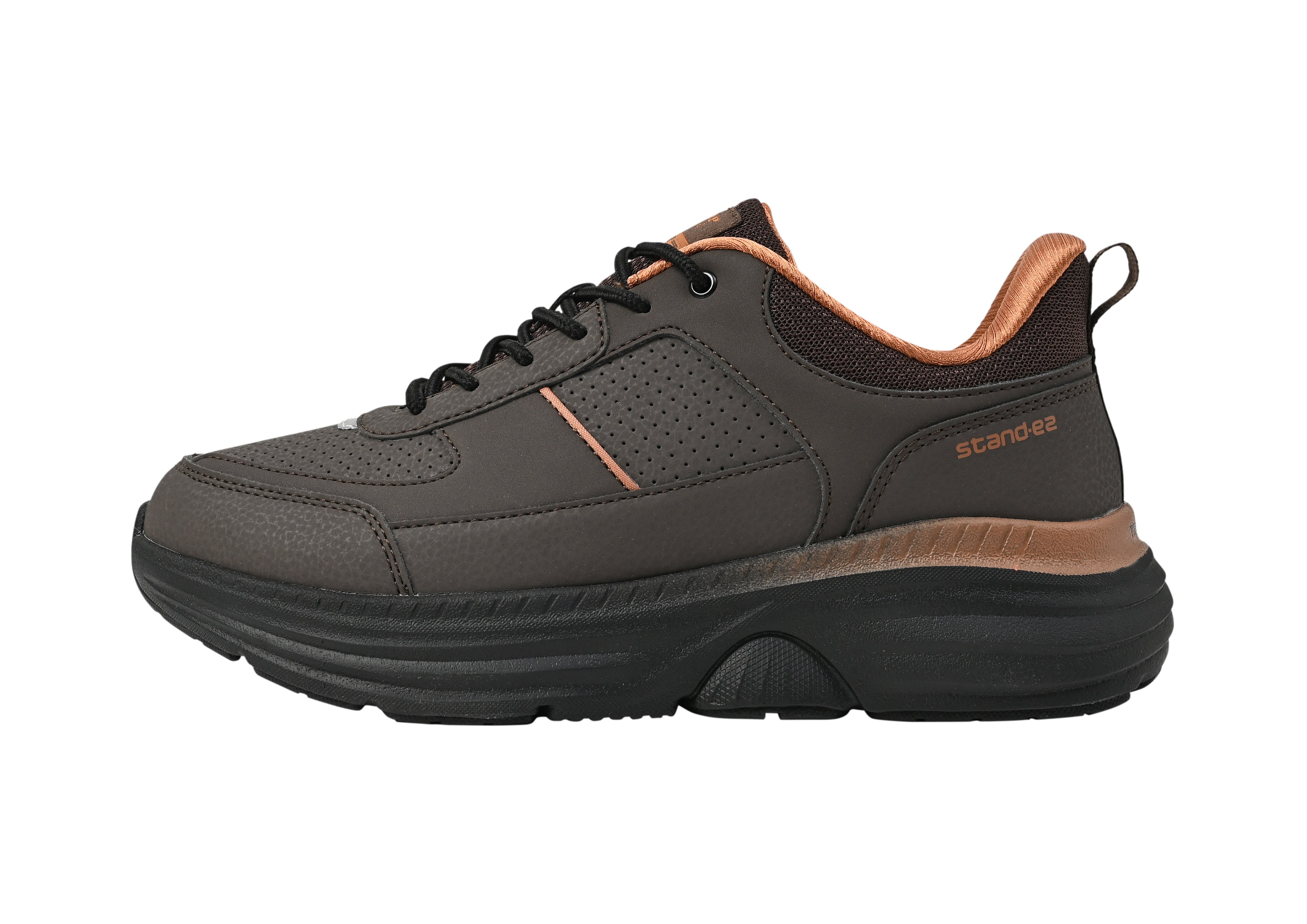 「stand-es(スタンドイーズ)」は、様々な足の形状の方に違和感なく履いていただけるように工夫を凝らしており、また、ふわふわしたインソールとミッドソールで履き心地の良さを体感できるシューズです。長時間の立位による負担を軽減し、あなたの足元をしっかりとサポートします。
