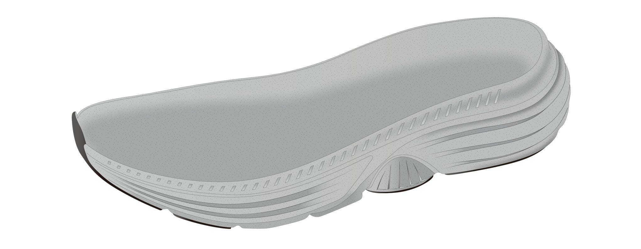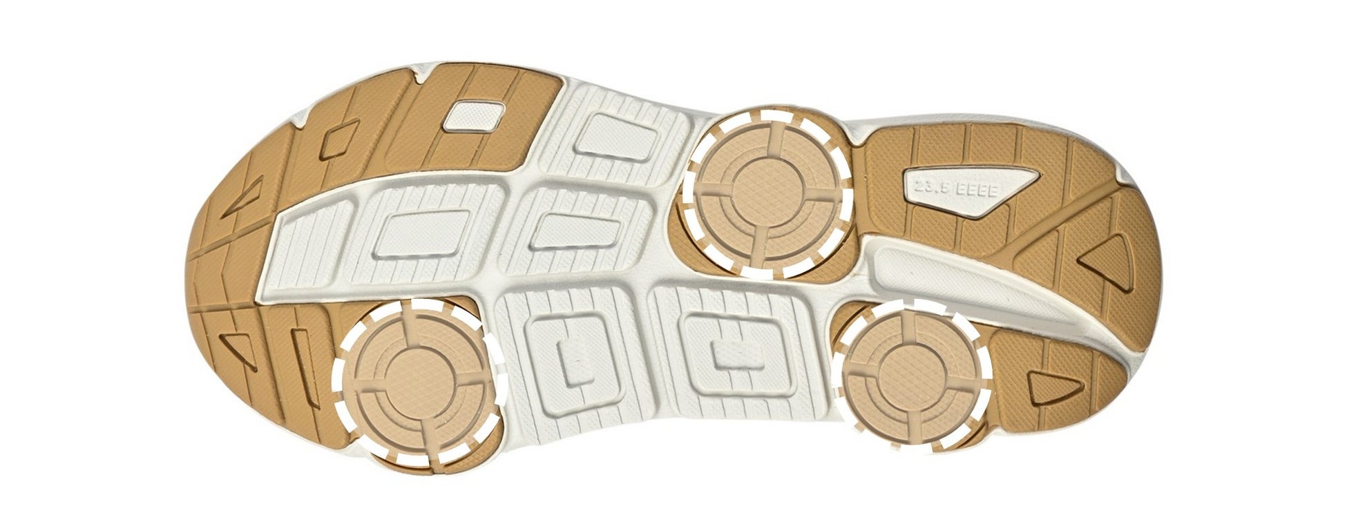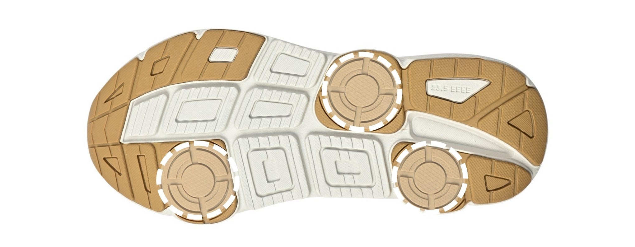 軽量性、弾力性を備えた特殊配合のEVAと安定性のある形状。柔らかさと安定性を両立した履き心地です。
