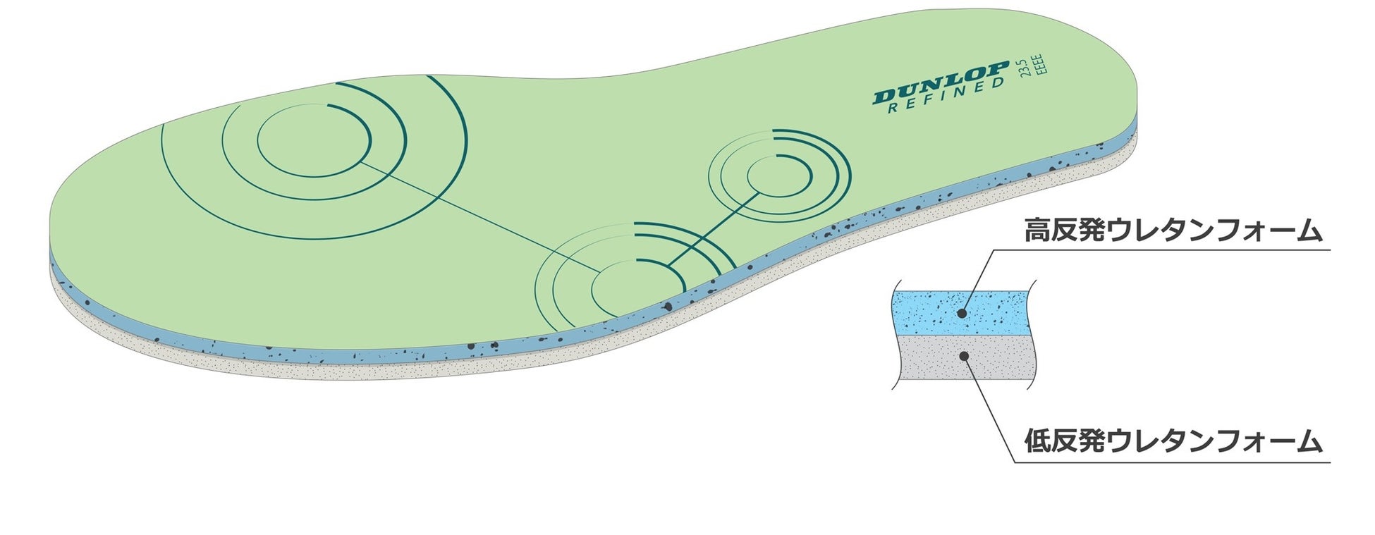 2層構造の極厚インソールが足裏の圧力を均等に分散。ふわふわした柔らかさが特徴のインソールです。