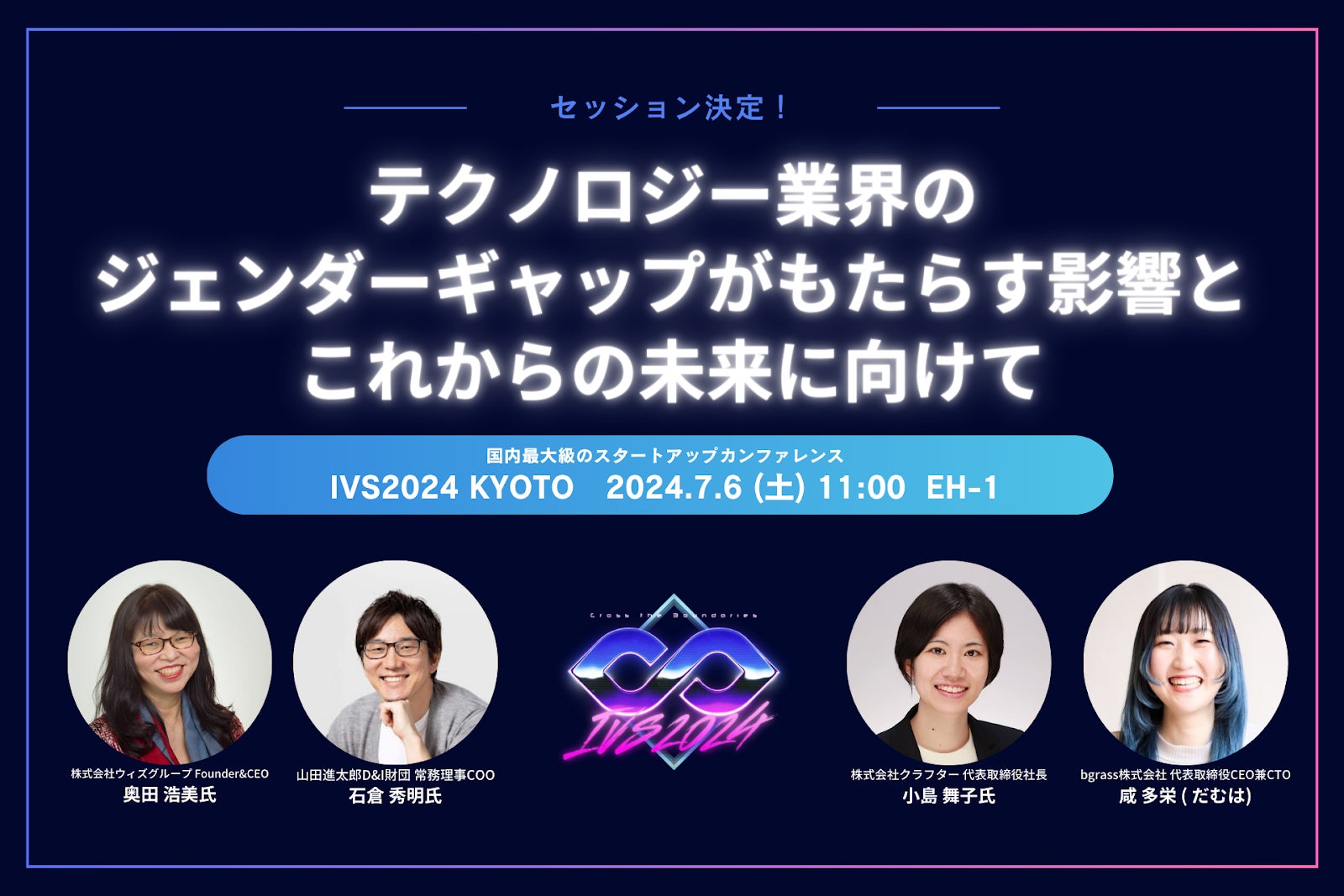 bgrass代表取締役の咸が、IVS2024「テクノロジー業界のジェンダーギャップ」のセッションにモデレーターとして登壇いたします