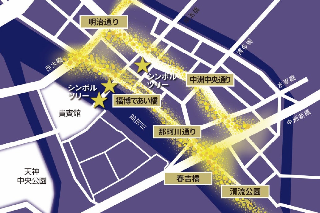 福岡市中洲地区/2023年11月2日(木)~2024年1月8日(月)点灯時間17:00〜18:00