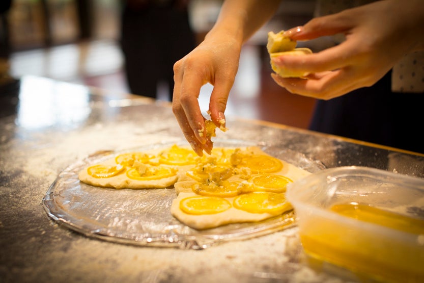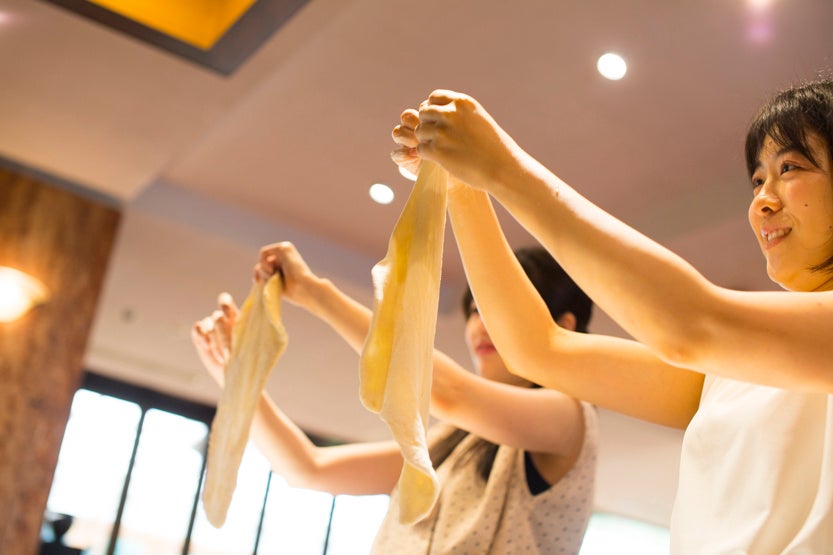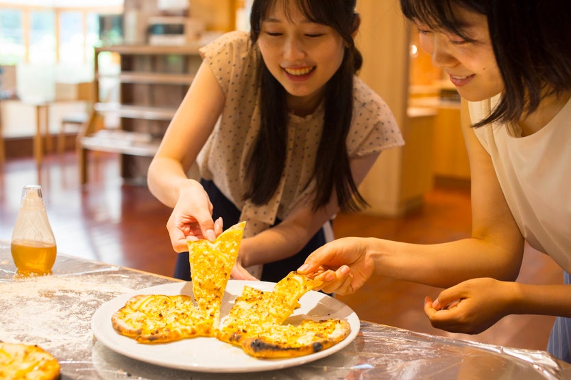 ピザ作りは生地を伸ばすところから始まり、具材をお好みでトッピングしていただきます。最後はプロ仕様の450℃の高温窯で焼き上げるため、外はカリッと、中はもっちりとした食感をお楽しみいただけます。教室終了後は、箱根の雄大な自然を眺めながら、ご自分で作った焼きたてピザをご堪能ください。