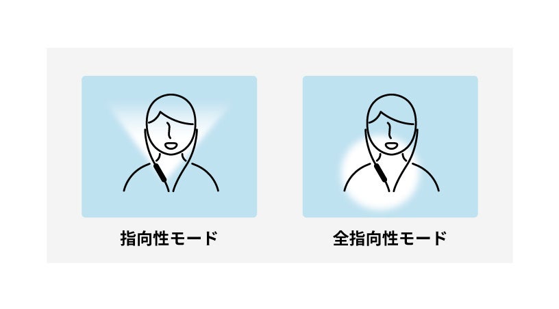 360°の範囲で収音し、指向性モードよりもノイズ抑制控えめ。体の向きの変化にも対応します。