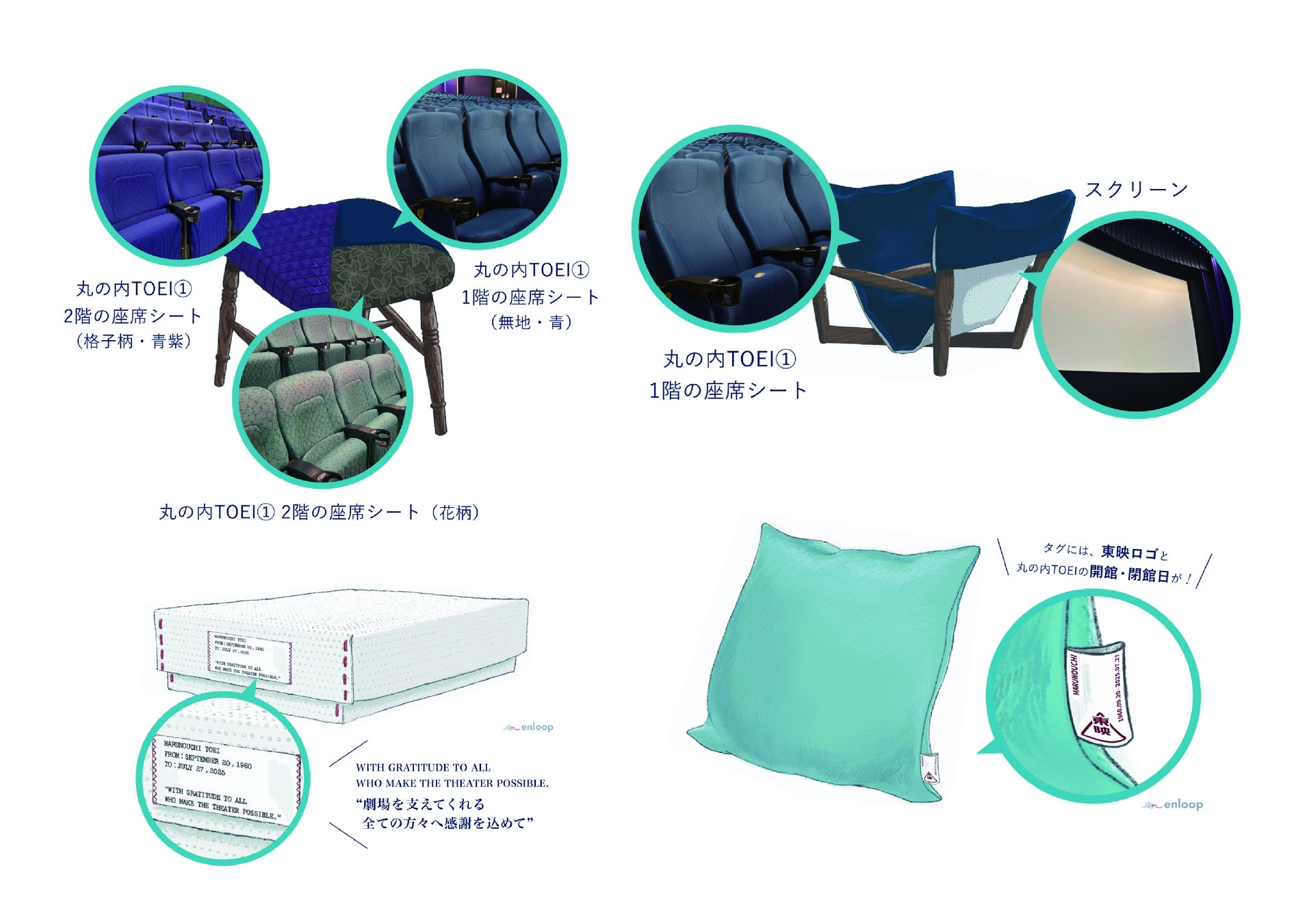 アップサイクル商品の制作は、1960年の開館以来多くの映画ファンに愛された丸の内TOEIの歴史を未来につなぐことを目的としており、お手元で永く丸の内TOEIを感じていただけるように東映スタッフ全員から皆様へ感謝を表したものです。廃棄予定の家具をデザインの力で再び価値のあるものにリメイクするenloop®とは親和性の高いプロジェクトであると賛同し、参加に至りました。