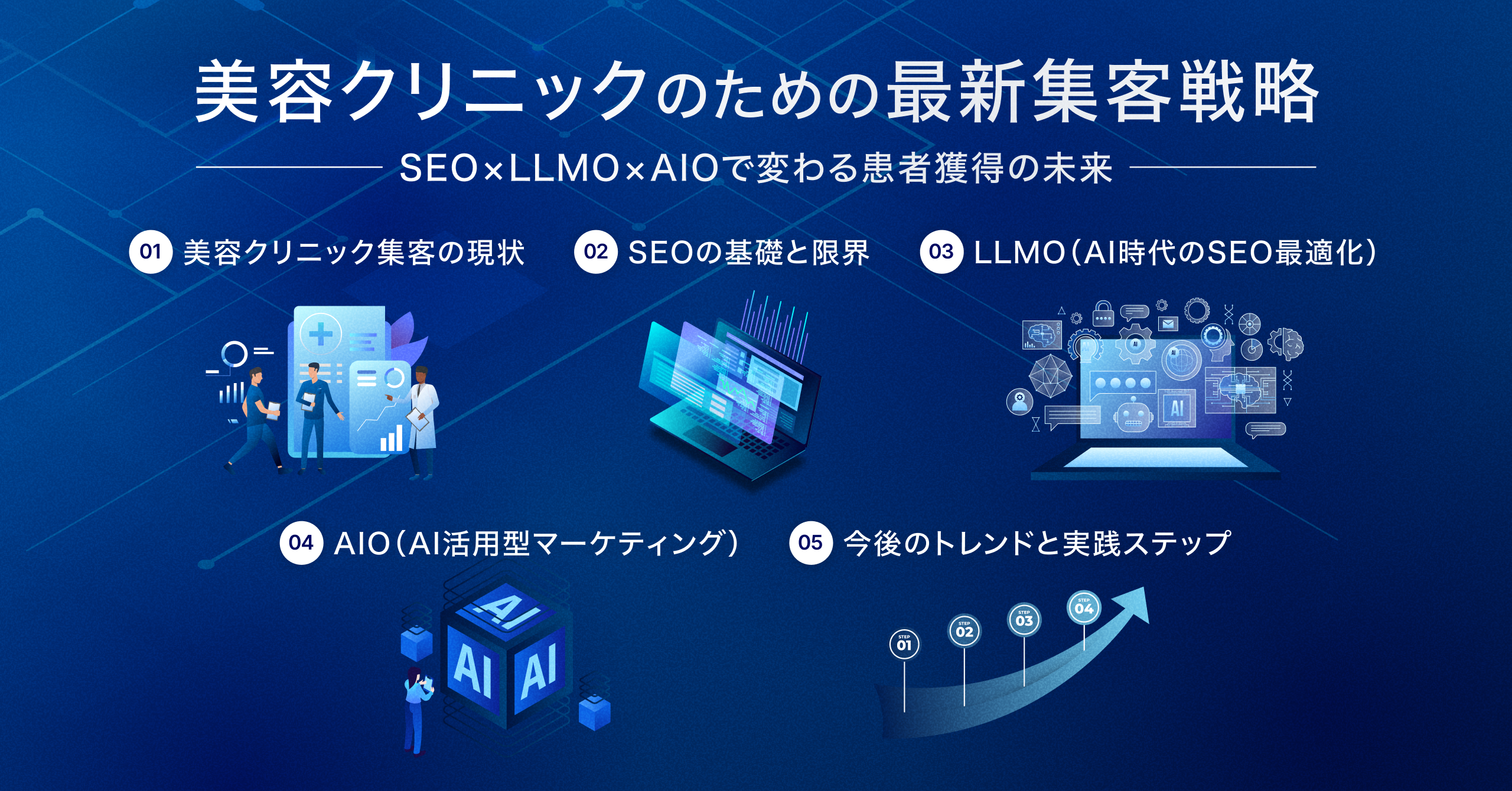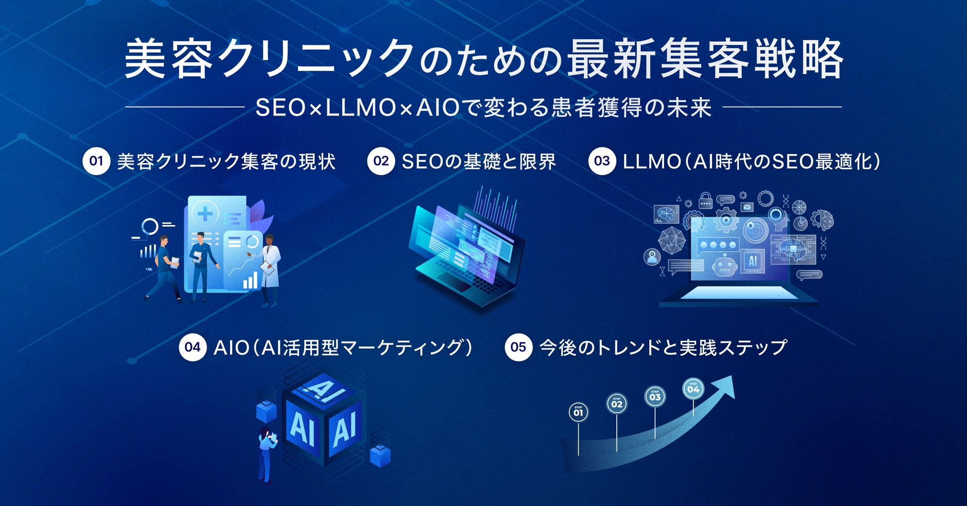 美容クリニックの新患・指名予約・再来を伸ばすために、SEO × LLMO × AIOを統合した最新の集客設計を体系的に解説します!