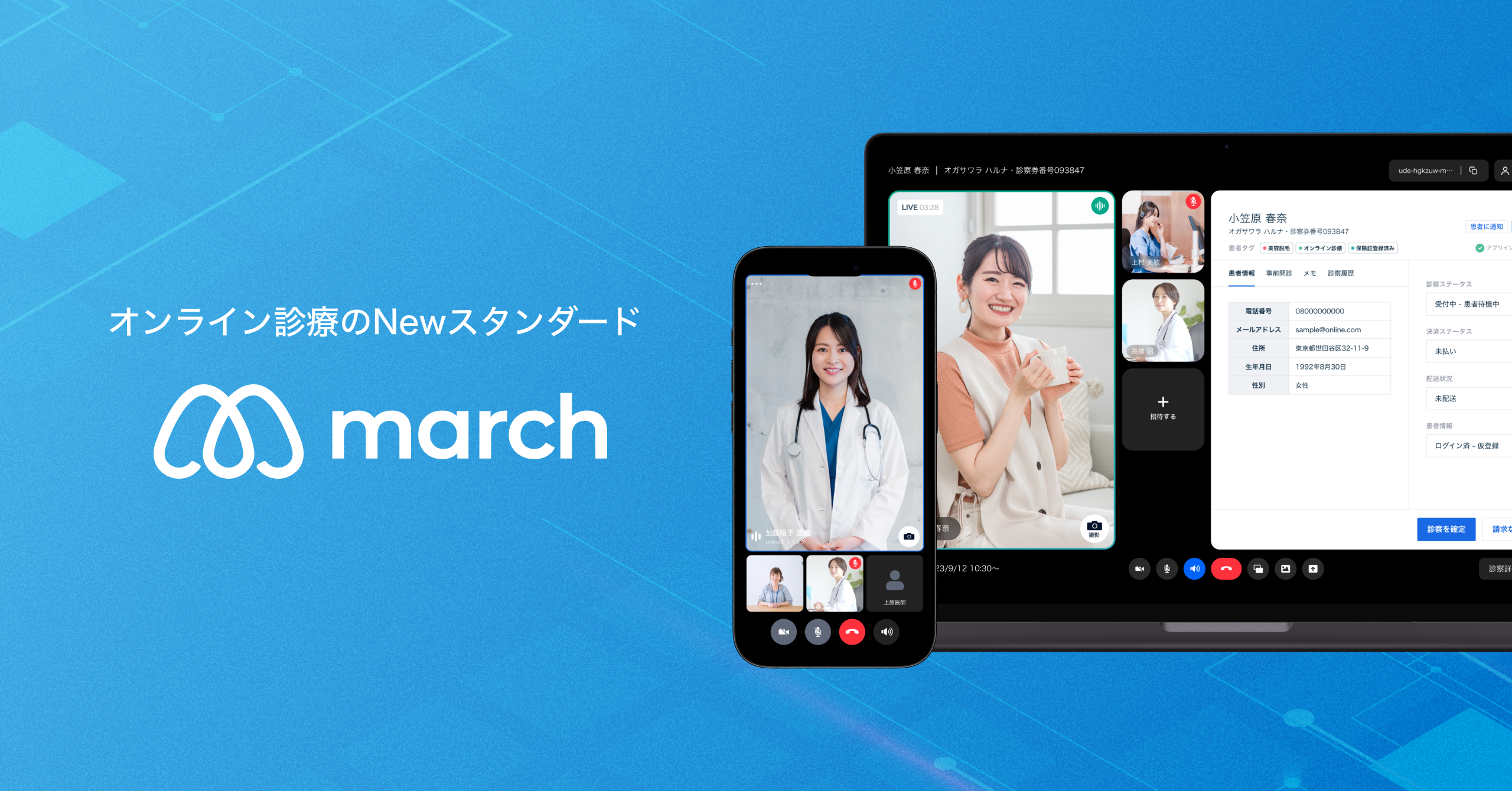 「march」は、医療機関と患者の双方にやさしいオンライン診療の実現を目指し、導入から運用、改善までを一気通貫でサポートします。