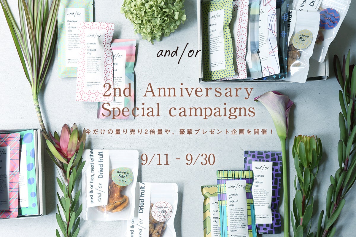 【量り売り2倍増量やお好きな2個プレゼントも】グラノーラ専門店「and/or」が2周年の感謝を込めて、期間限定で3つのキャンペーンを開催!9月11日よりスタート!