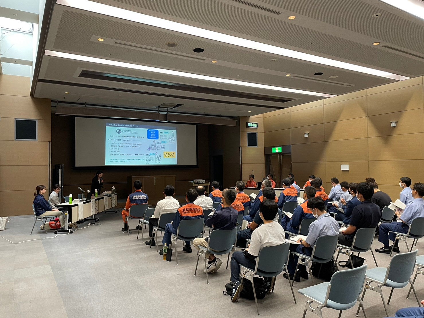 特定非営利活動法人日本補助犬情報センターは、災害時の弱者支援に焦点を当てた浜松市消防局の取り組み「身体に障害のある方及び身体障害者補助犬に係る消防研修会(全3回)」に協力しています。2023年度には全3回の研修・訓練を実施されました。