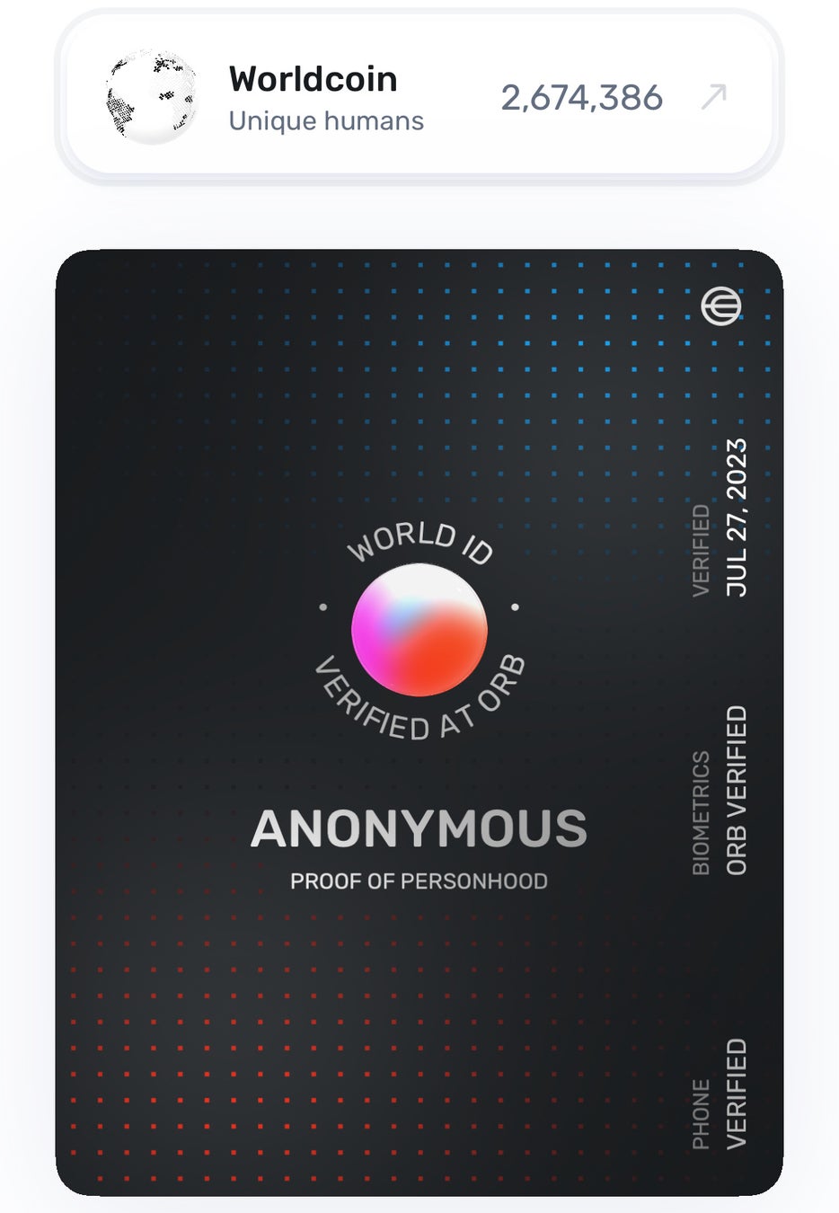②人間だけが受け取れるデジタル通貨「$WLD」を2週間に一度Claimできる。