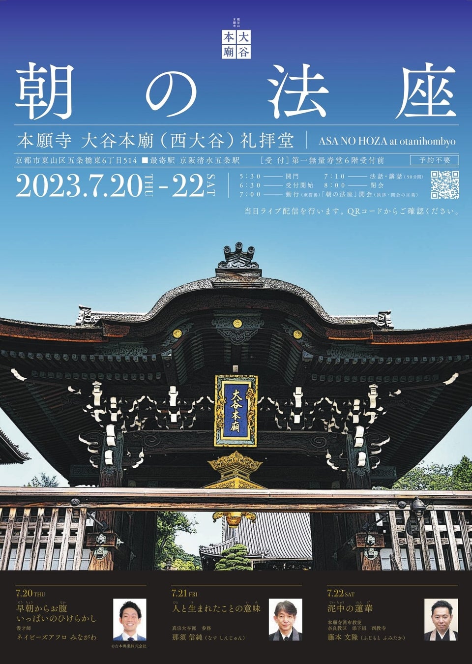 【西本願寺】大谷本廟(おおたにほんびょう)夏の風物詩「朝の法座」(無料)を開催します!