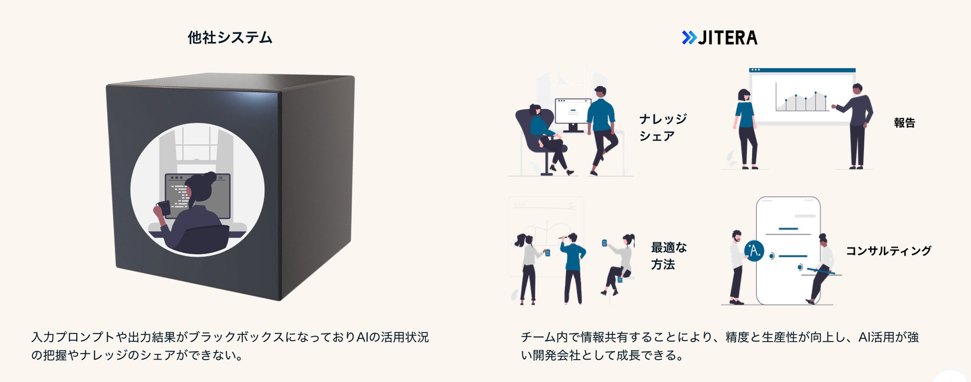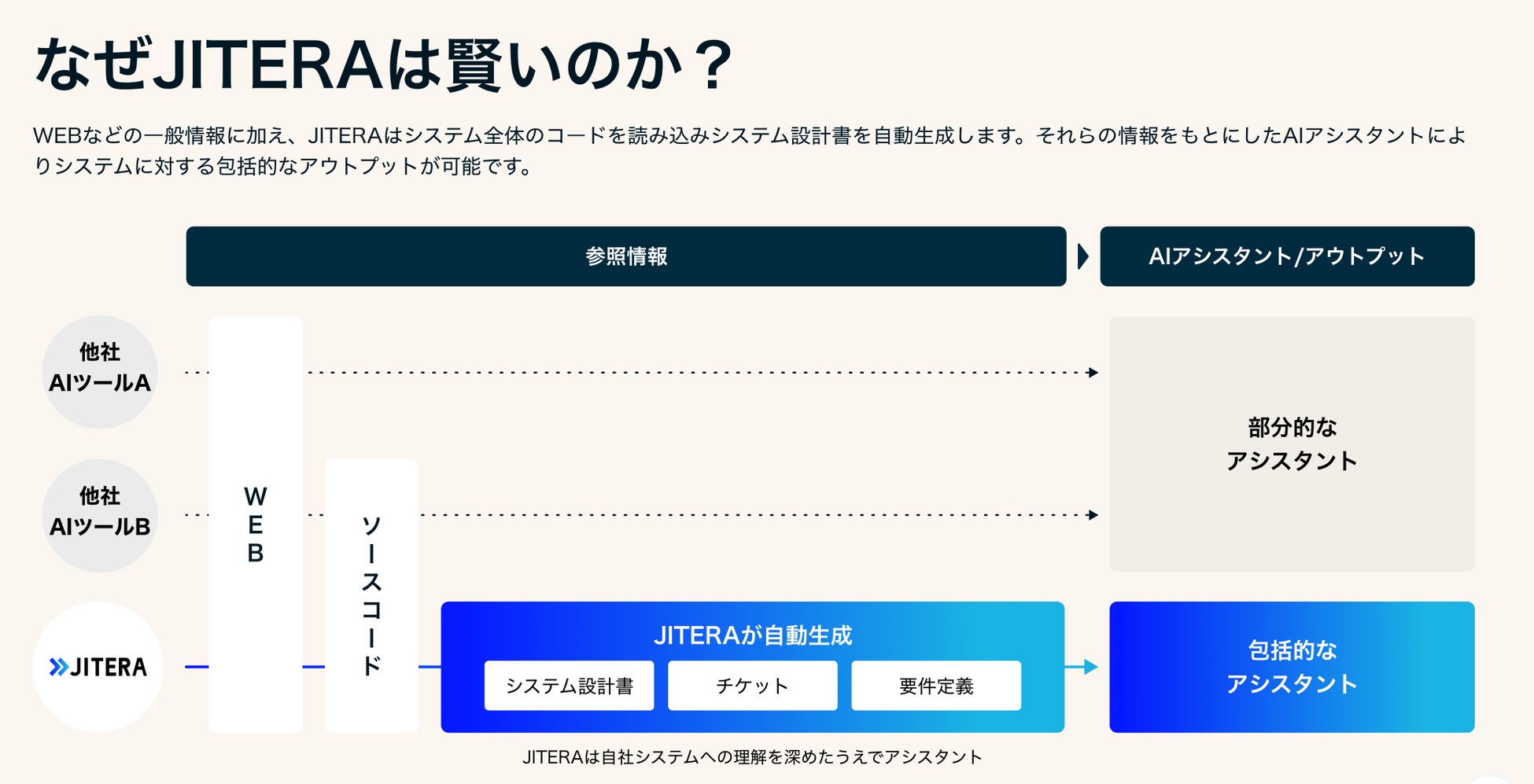 そのため、Jiteraは開発現場で使われるAIアシスタントツールとして、非常に優れています。