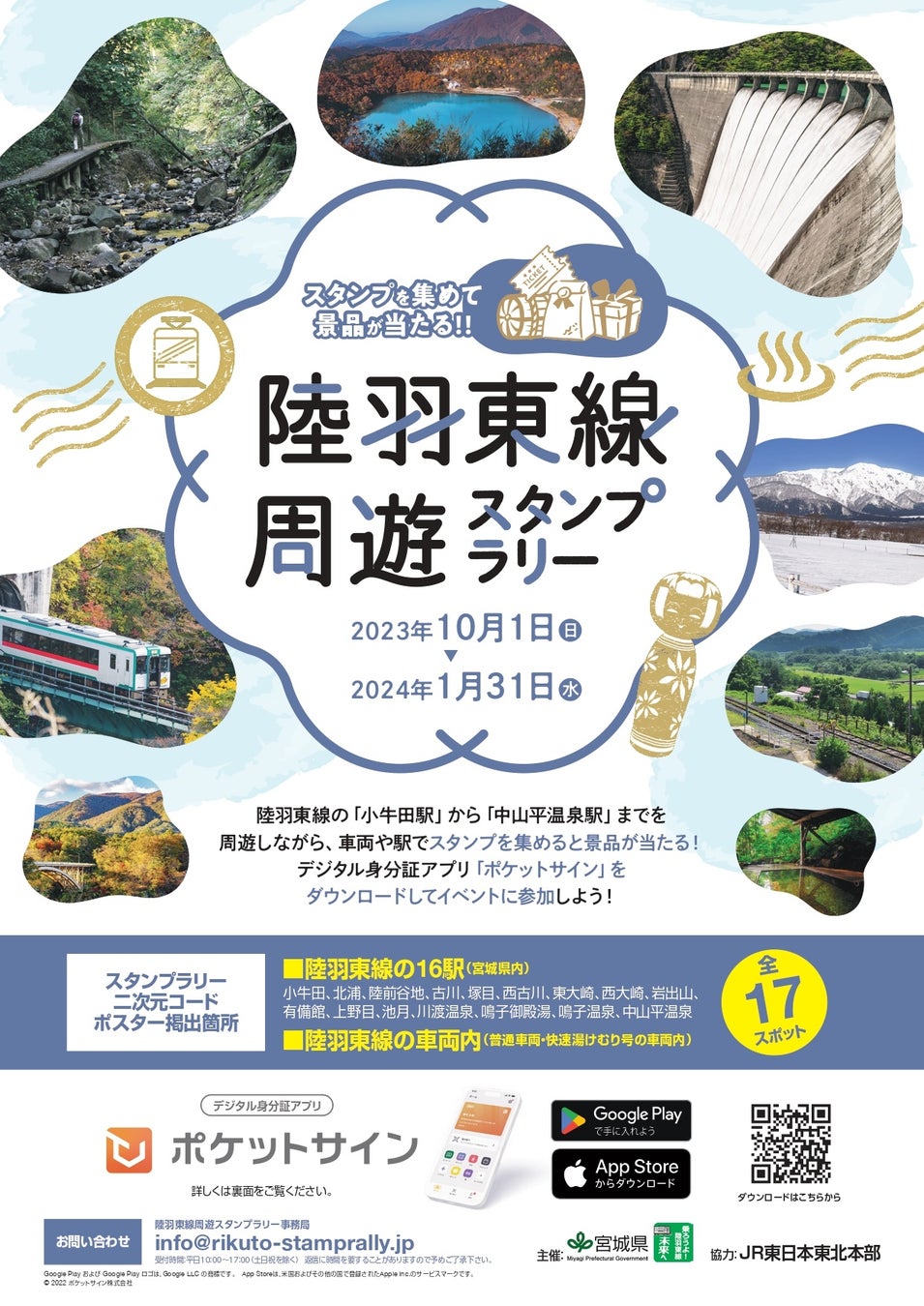 ポケットサイン株式会社(本社:東京都中央区、代表取締役CEO/COO:梅本滉嗣、以下当社)は、デジタル身分証アプリ「ポケットサイン」のミニアプリであるポケットサイン”スタンプラリー”アプリを開発し、令和5年10月1日より宮城県主催の企画「陸羽東線周遊スタンプラリー」での利用が開始されました。