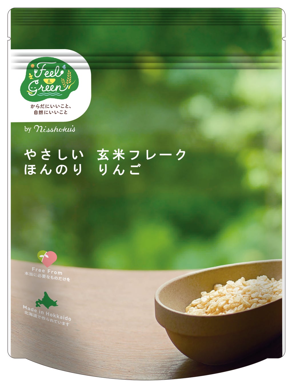 「本当に必要な」ものだけで作ったこだわりの北海道産玄米フレーク。食感が軽く、青森県産りんご果汁でやさしい味付けをしているため、お子様の「やさしい」おやつとしても最適です。
