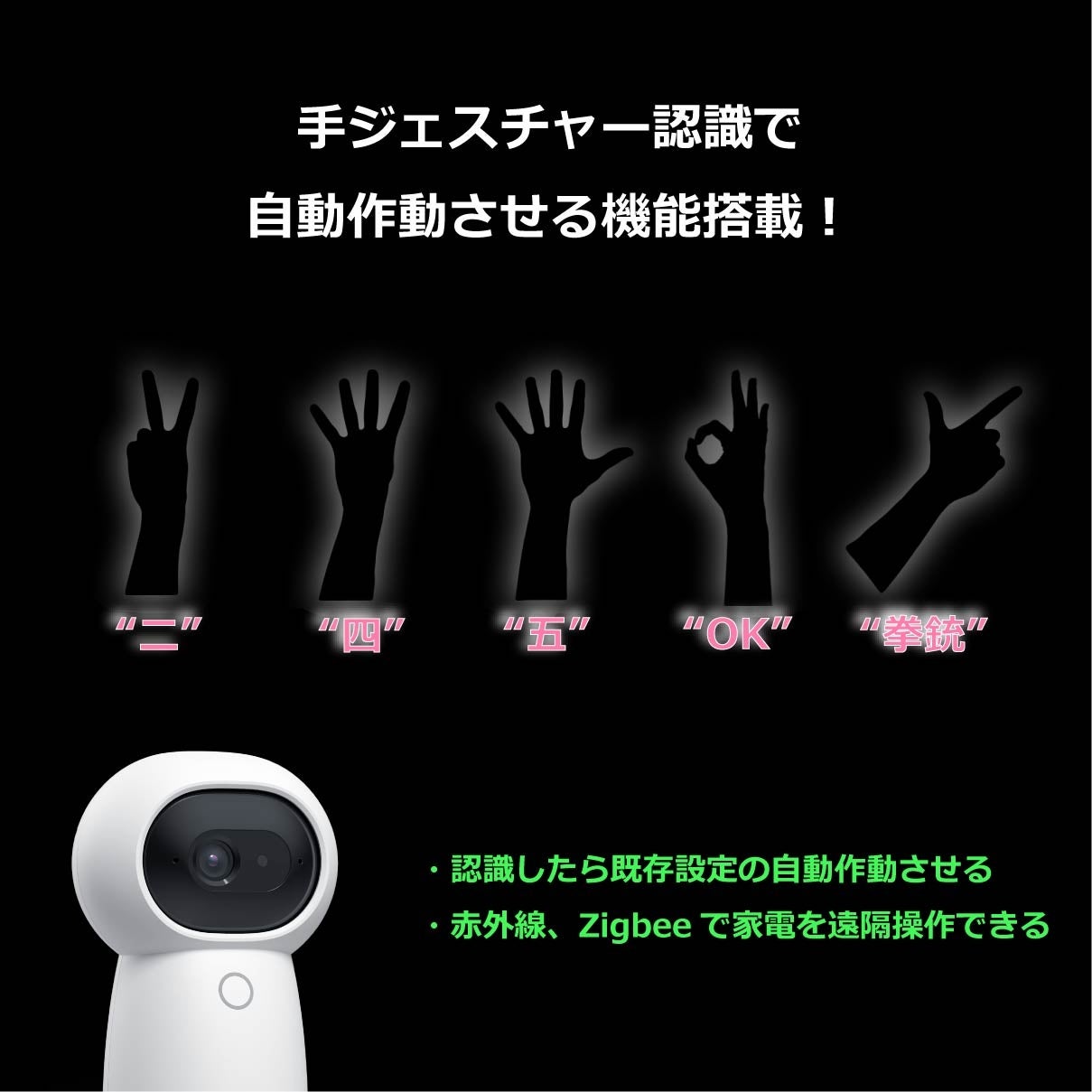 | ①「窓」もセンサーと連動して、しっかり「見守り」 ②家族の顔を「認識」 ③人間もペットも「ワイドビュー」「クリアな画像」で追跡 ④家電を〝手ジェスチャー〟で操作可能 ⑤プライベートな時間もばっちり守る ⑥「Amazon Alexa」をはじめ各WWA認証も取得済み |