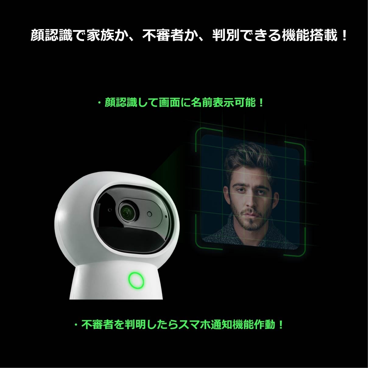 顔認識機能で家族の顔を認識し、登録外の人間がいるとスマホへ通知します。