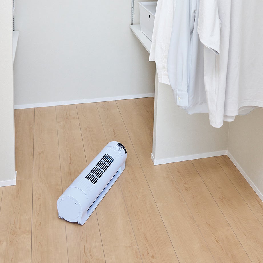 本製品は、部屋干し時に気になる「生乾き臭」や「乾きムラ」といった悩みに応えるため、独自の送風設計により効率的な送風を実現。垂直に吹き上げる送風と自動首振り機能で、洗濯物全体にムラなく風を届け、乾燥時間の短縮が期待できます。花粉やPM2.5が気になる季節でも、部屋干しで乾かせるのが大きな魅力。コンパクト&軽量設計で、普段使いから梅雨時、冬場の室内乾燥まで一年を通じて幅広いシーンでご使用いただけます。