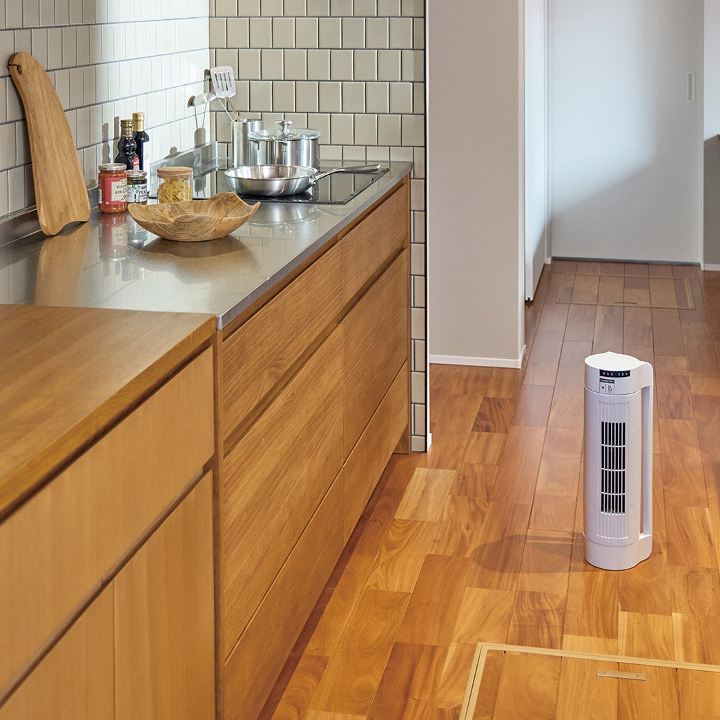 ・縦置き:タワーファンとして、キッチン・書斎・脱衣所など狭い空間の空気循環に