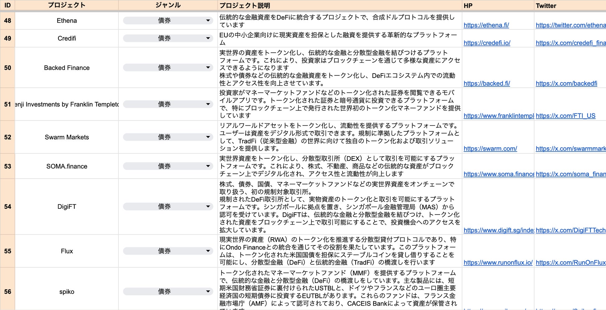 本RWAカオスマップは、各プロジェクトを19のカテゴリーに分類しています。