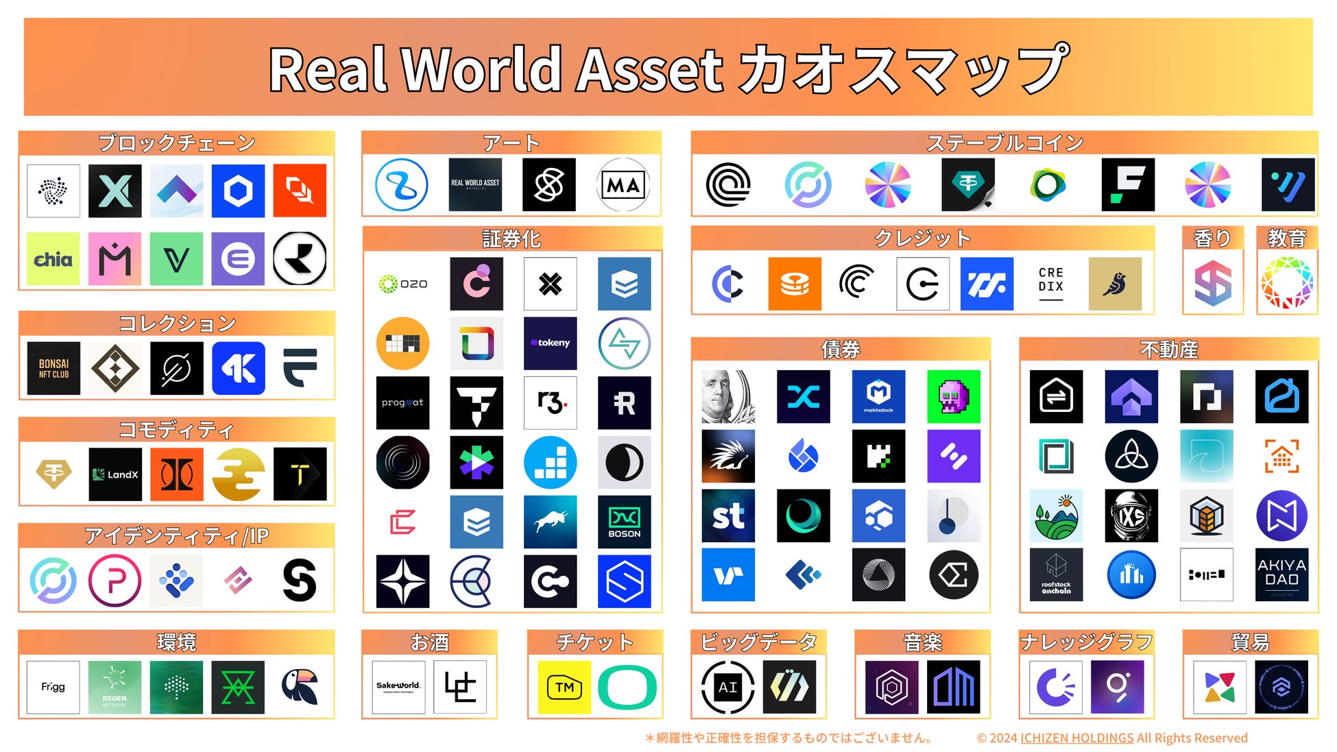 株式会社ICHIZEN HOLDINGS(東京都渋谷区、代表:水野倫太郎)は、現物資産をトークン化したRWAをテーマにした「Real World Assetカオスマップ」を公開しました。