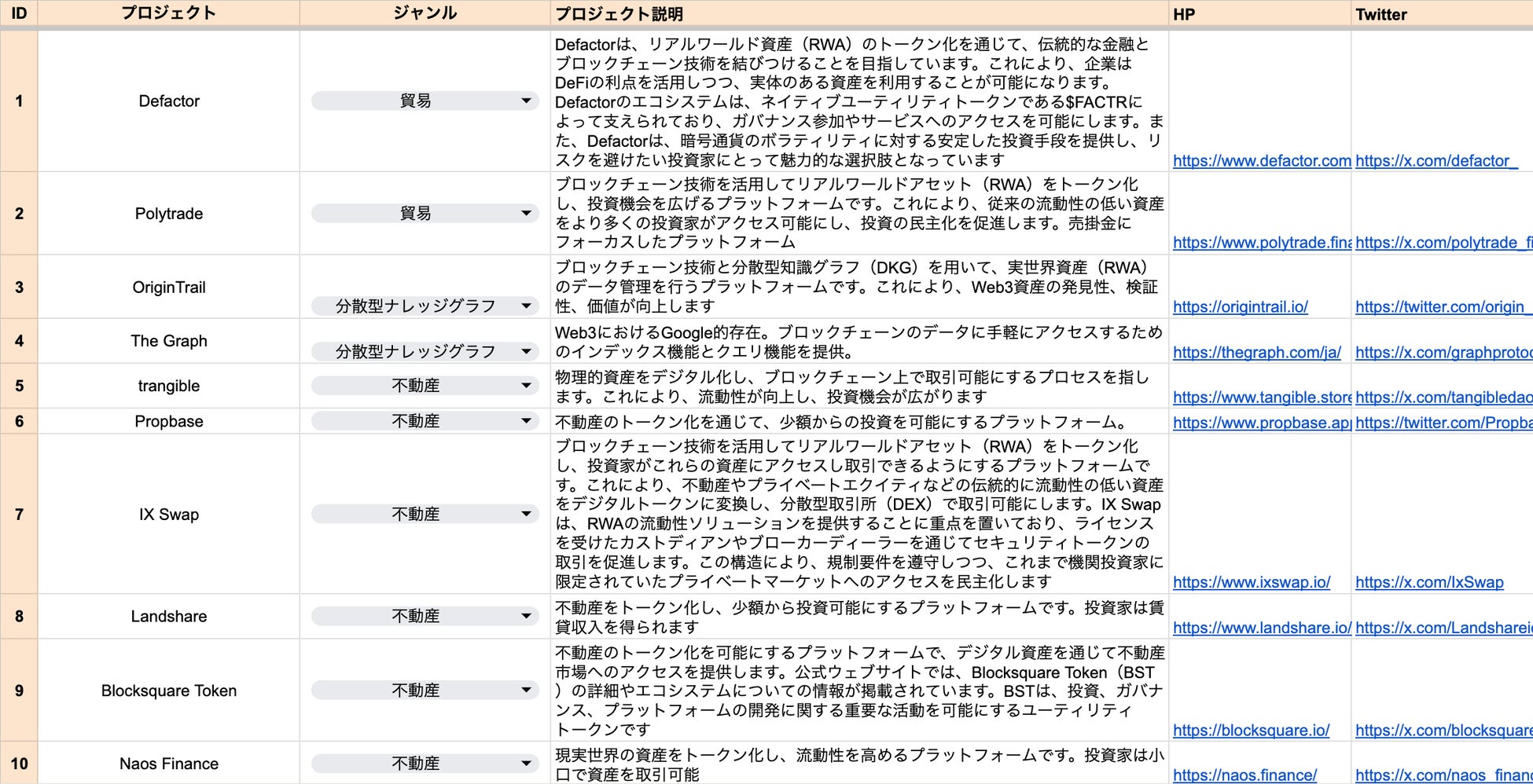 各プロジェクトの「解説」「公式HP」「公式X」をまとめているスプレッドシート/Excelは、以下よりダウンロード出来ます。本領域の把握、事業機会の探索にお役立ていただければ幸いです。