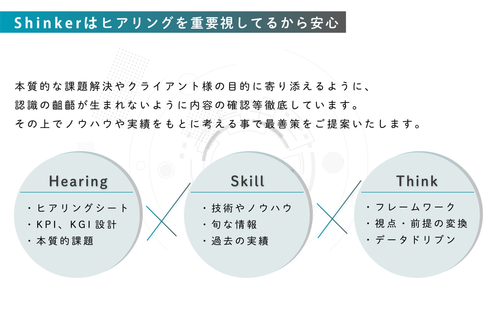 「私たちShinkerは、クライアントの成長に対して真摯に向き合い、成果を出すことを最優先にしています。特に地方企業に対しては、地域に密着したマーケティング戦略を提供することで、持続可能な成長をサポートしています。今後も、データ分析とデジタル技術を活用し、より効果的なマーケティングを展開していきます。」