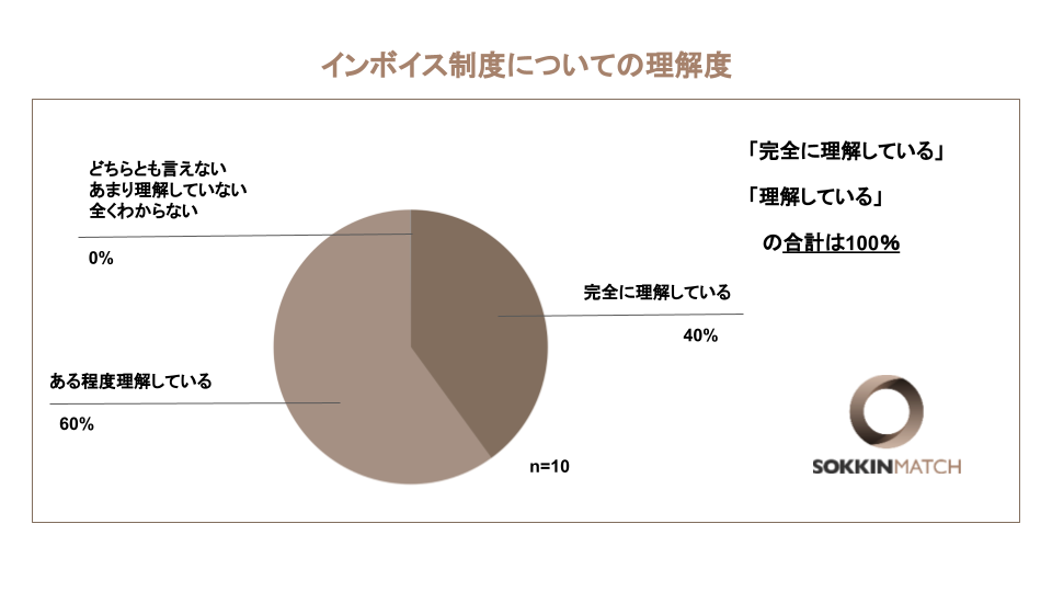 「完全に理解している」「理解している」の合計は100%と、アンケートへ回答した全ての業務委託者がインボイス制度に対して一定の理解を持っていることが伺えた。