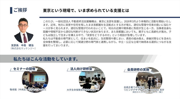 東京支部発足という節目にあたり、未来志向の財産管理を提示できる第一人者を迎えることは、不動産終活の実務を一段引き上げる意味を持ちます。