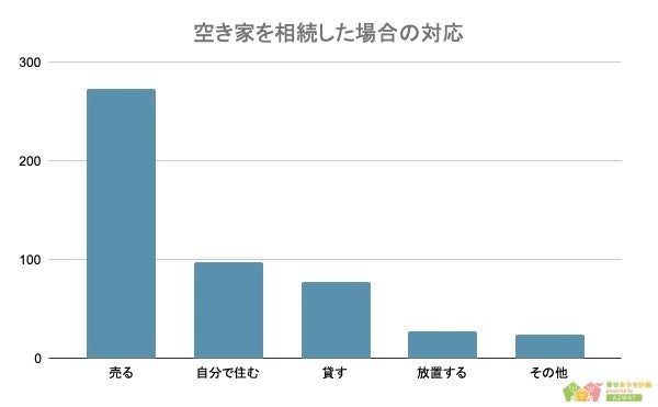 また、「もし自分が空き家を相続した場合、どのように対処するか」と聞いたところ、1位が「売る(273人)」、2位が「自分で住む(98人)」、3位が「貸す(77人)」という結果になりました。