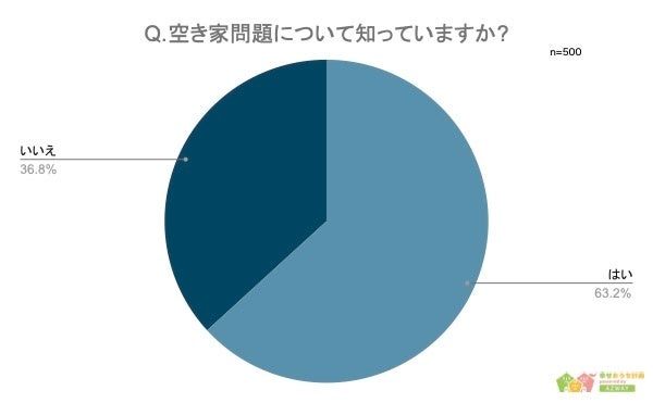 10代から60代以上までの男女500人に「空き家が20年間で2倍近くに増加しており、2030年には430万戸になると予測された問題を知っているか」と聞いたところ、「はい」と答えた人は316人で全体の63.2%でした。
