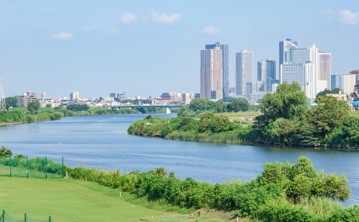 川崎市は神奈川県の北東部に位置し、多摩川をはさんで東京都と接しています。東西に細長い地形で、東は京浜工業地帯が広がる臨海部、西は多摩エリア。北西部の一部を除いて、全体的に平たんな地形です。1972年に政令指定都市となり、東側から川崎・幸・中原・高津・宮前・多摩・麻生区の7つの区があります。全国に20ある政令指定都市の中で最も小さな面積でありながら、擁する人口は約154万人となっており、人口密度が高い街です。