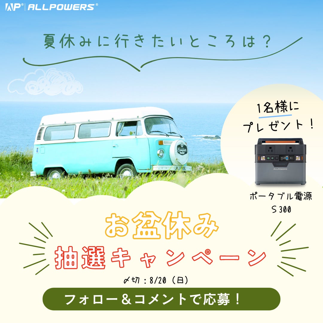 【ポータブル電源が当たるプレゼントキャンペーン】ALLPOWERSポータブル電源S300を2名様にプレゼント!8月20日まで簡単応募!
