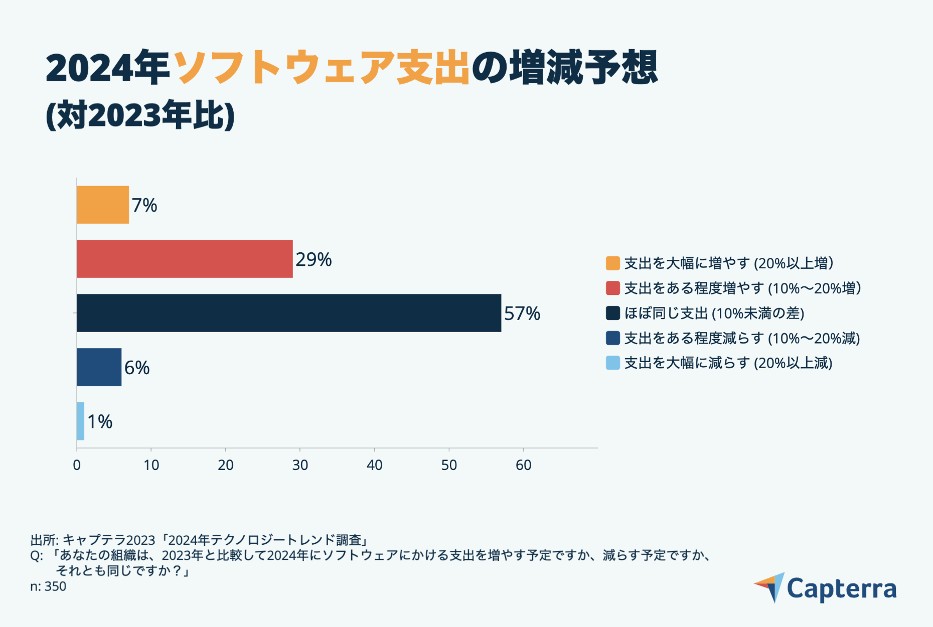 4、2024年ソフトウェア支出「36%の企業が増額予定」