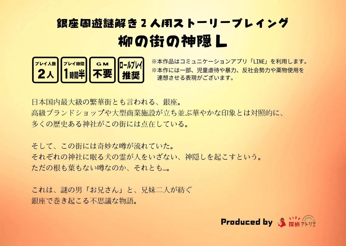 銀座周遊謎解き2人用ストーリープレイング「柳の街の神隠し」公式サイト