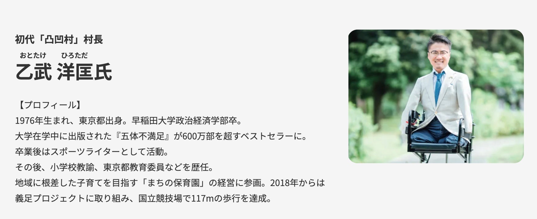 「凸凹村、ついに正式な“開村”を迎えました。私には生まれつき両手両足がない『わかりやすい障害』がありますが、それ以外にも外部からはわかりづらい障害、さらには障害と認定されていないものの、社会的な生きづらさを抱えている方など、様々な方がいらっしゃいます。そうした方々が混ざり合い、助け合うことで、一人でも多くの方が生き生きと暮らしていける社会を目指していきましょう。この凸凹村が、そんな場所になるよう私も努めていきます!」