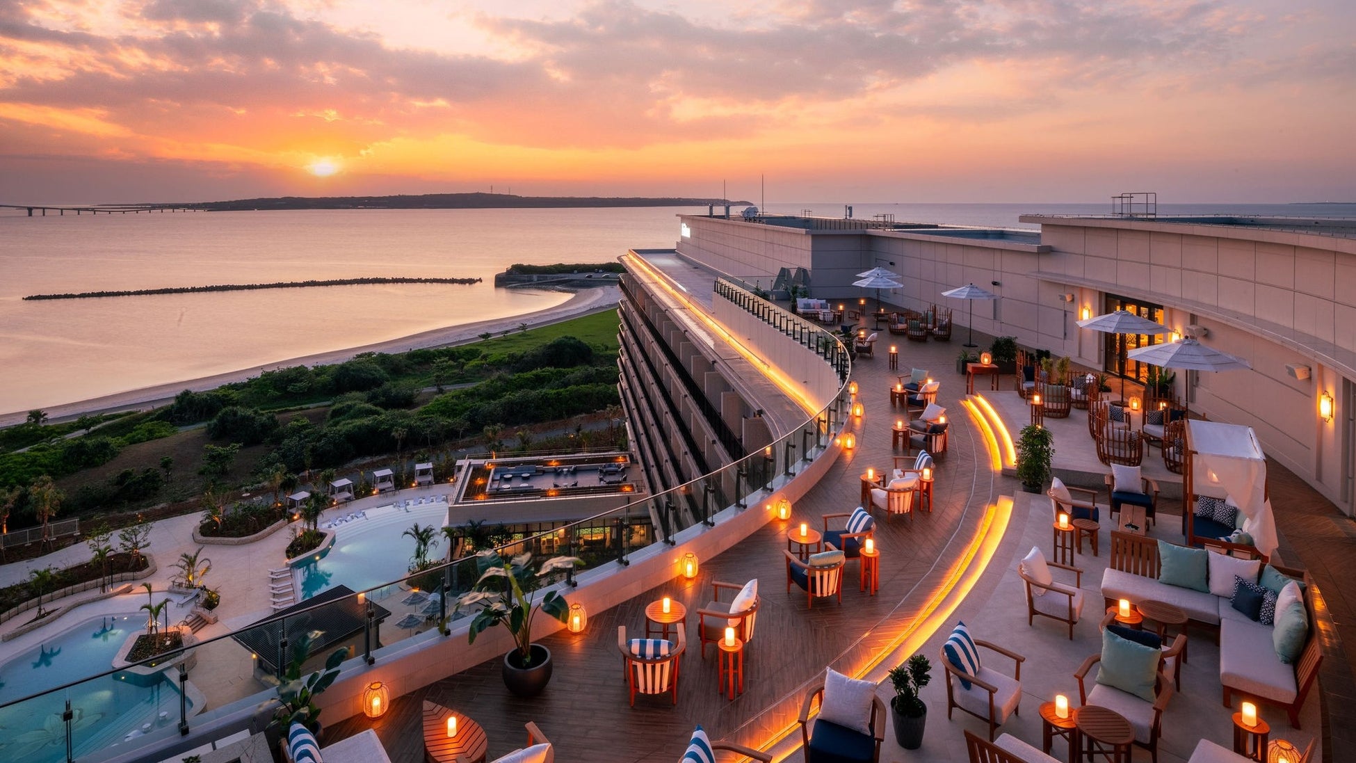 ヒルトン沖縄宮古島リゾートは、2023年6月18日に開業した、ヒルトンとして日本国内初の離島での展開となるリゾートホテルです。沖縄県宮古島市トゥリバー地区に位置し、伊良部大橋や美しいサンセットを望む絶好のロケーションに加え、5つのプール、複数のレストラン、ルーフトップバーなどを備えた、自然の豊かさと洗練された施設が調和する空間で、快適かつ多彩なリゾート体験を提供してまいりました。