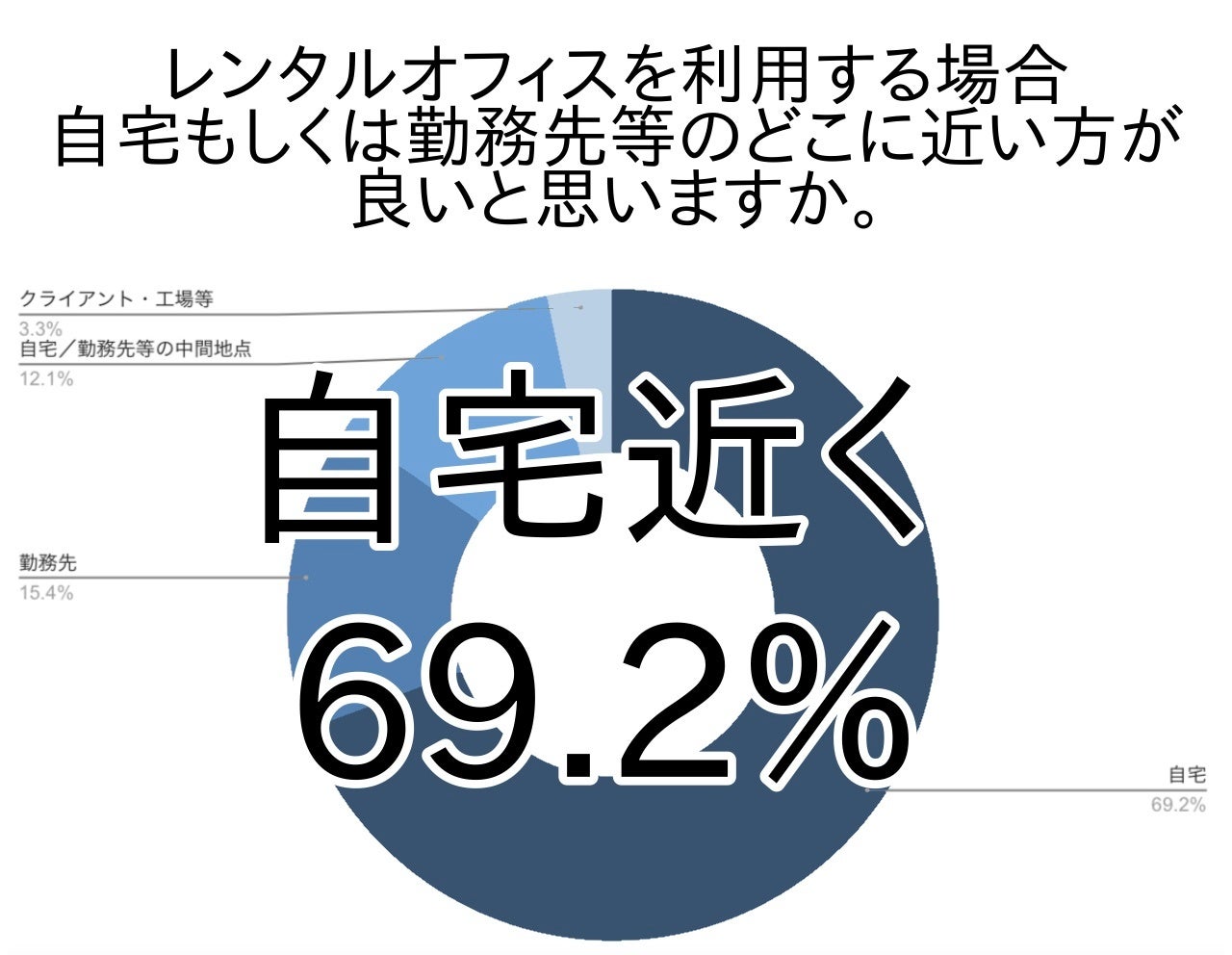 アンケートでははじめに、レンタルオフィスを利用する場合自宅もしくは勤務先等のどこに近い方が良いと思うか尋ねました。
