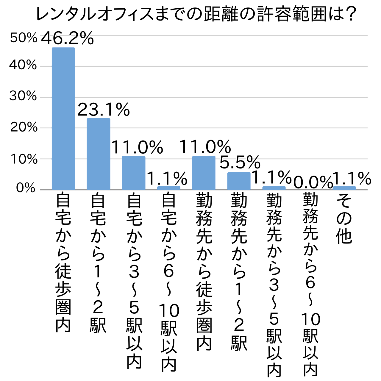 アンケートでは次に、レンタルオフィスまでの距離の許容範囲を尋ねてみました。