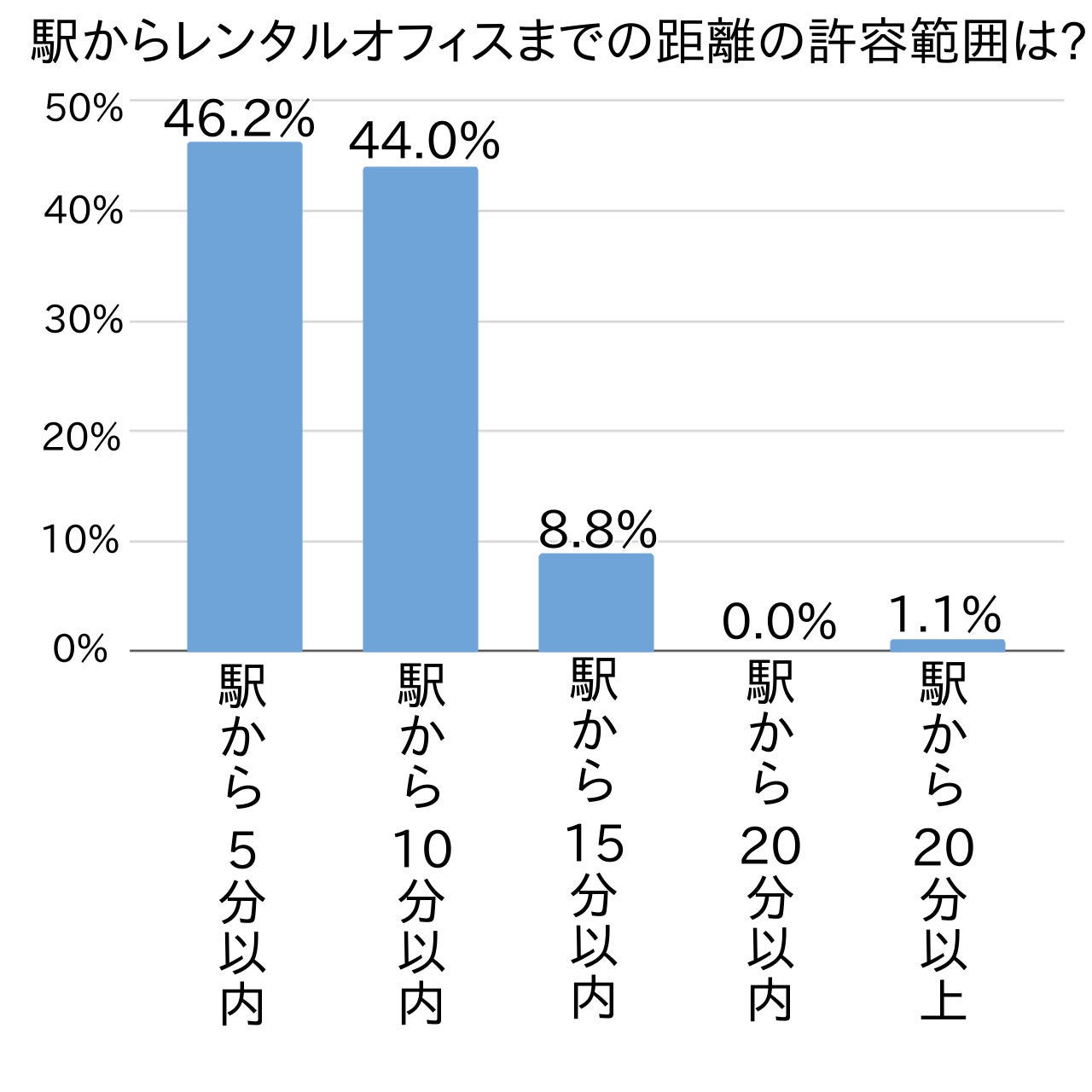 アンケートでは次に、駅からレンタルオフィスへの距離の許容範囲についても尋ねてみました。
