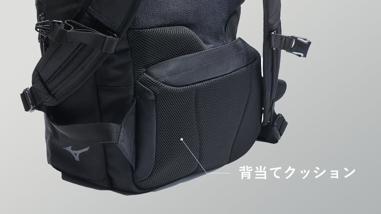 たくさんの荷物を入れても快適な移動を目指しました。(※ミズノ従来品比較)