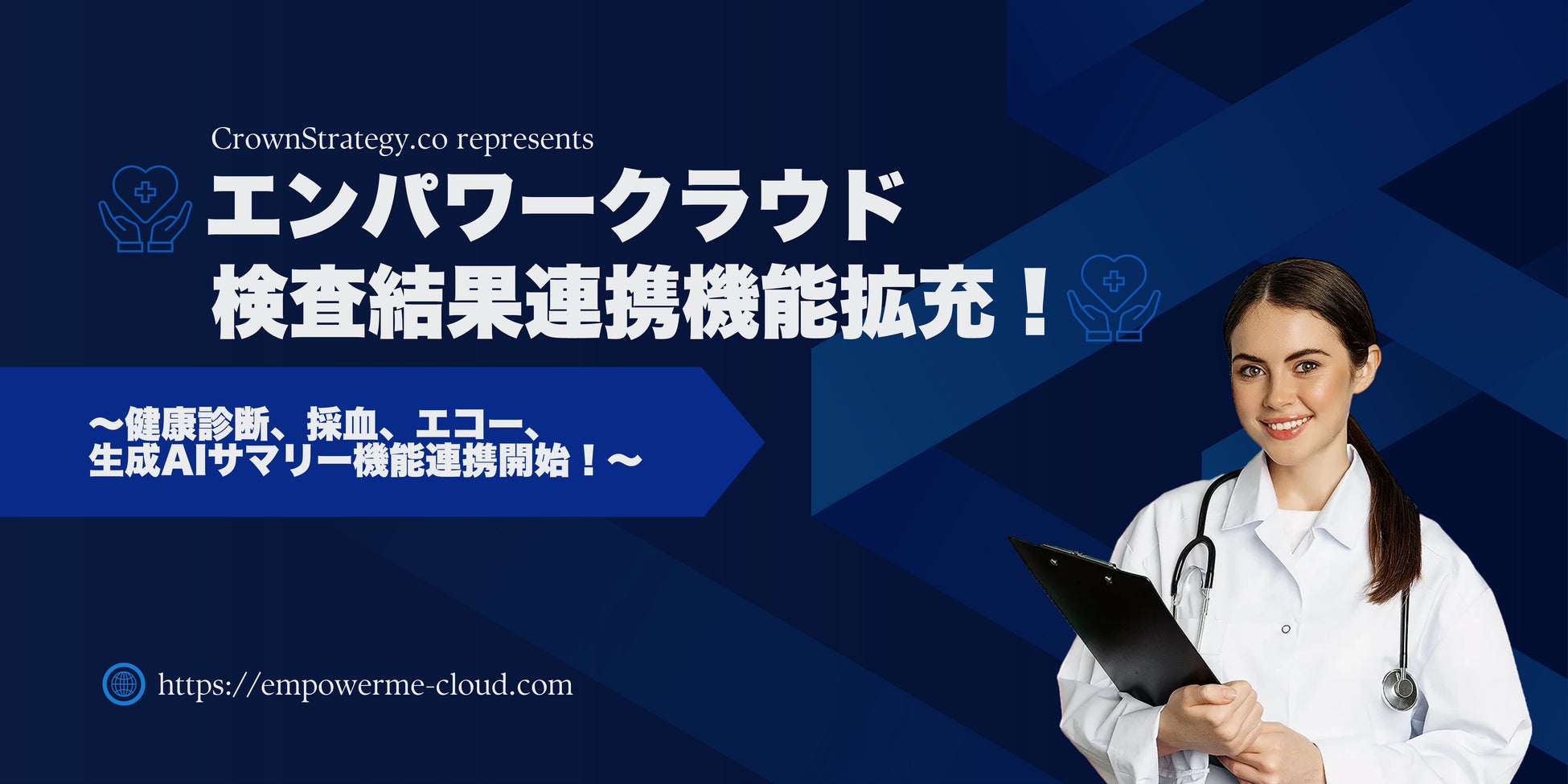 事業戦略策定から構築とデータサイエンスまで、一気通貫したサービスを提供している株式会社CrownStrategy(所在地:東京都品川区、代表取締役:秋吉夏帆)は、2024年5月にサービス提供開始した美容クリニック・サロン・形成外科に特化した自動化電子カルテシステム【EmpowerCloud(エンパワークラウド)】の検査結果連携機能を拡充いたしました。2024年11月中にお問い合わせしてくださったカルテ導入予定の医療従事者のみなさまにAmazonギフト券をプレゼントいたします。
