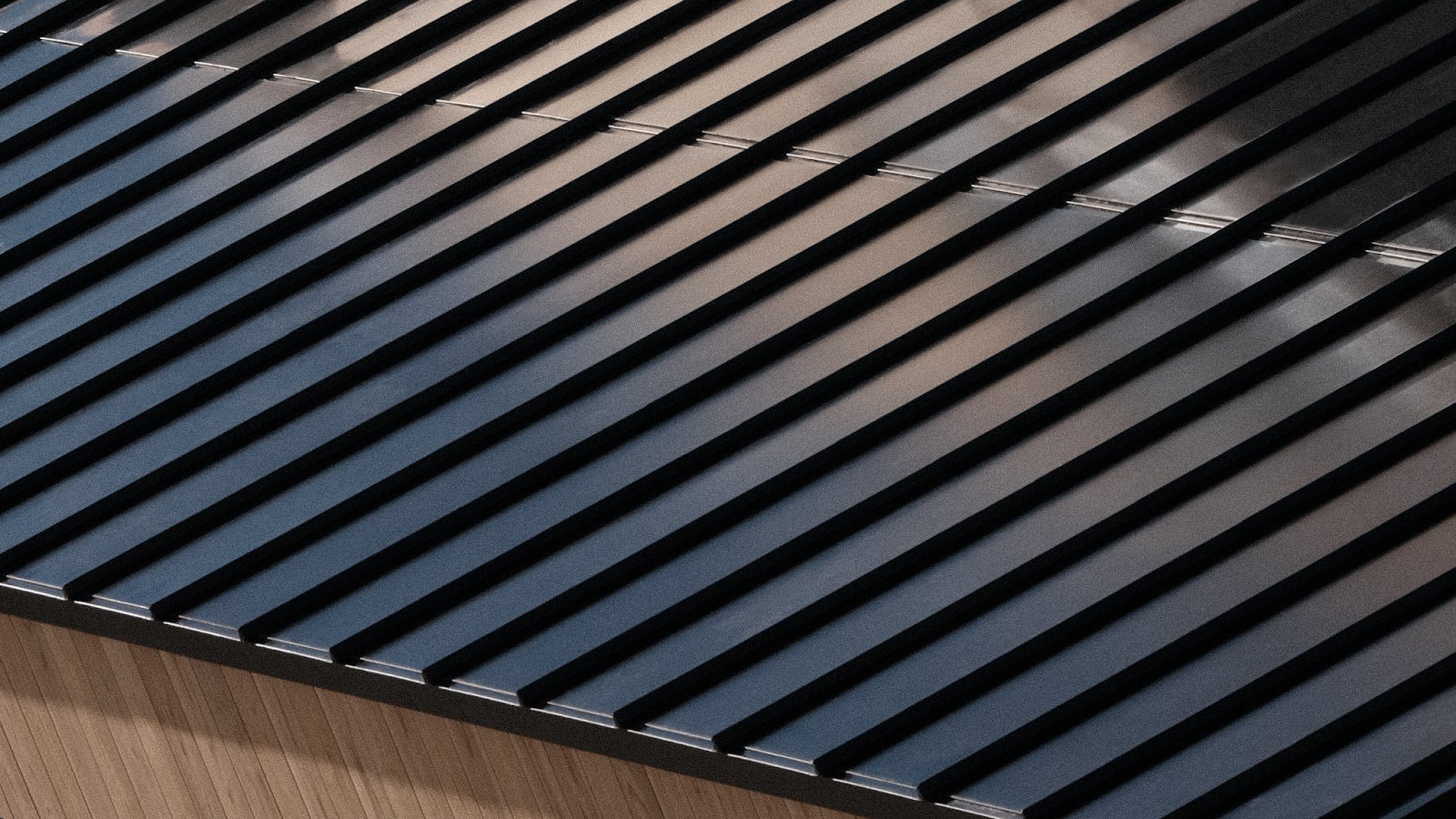 Roof-1は金属屋根に特殊加工した太陽光セルを組み込むことで、普通の屋根にしか見えないデザインを実現した屋根一体型太陽光パネルです。一般的な住居用太陽光パネルは屋根、架台、太陽光パネルを設置するのに比較し、屋根だけの設置となるため1回の施工で完了します。Roof-1は耐候性の高いフッ素塗膜に守られているため、30年間メンテナンス不要(2*)。10年~15年ごとの太陽光の脱着と再塗装が必要な一般的な屋根に架台式太陽光パネルを設置した場合と比べて、トータルコストを抑えることができます。一。太陽光モジュールは25年間無償出力保証(*3)、さらに金属屋根は25年間無償保証(*4)です。