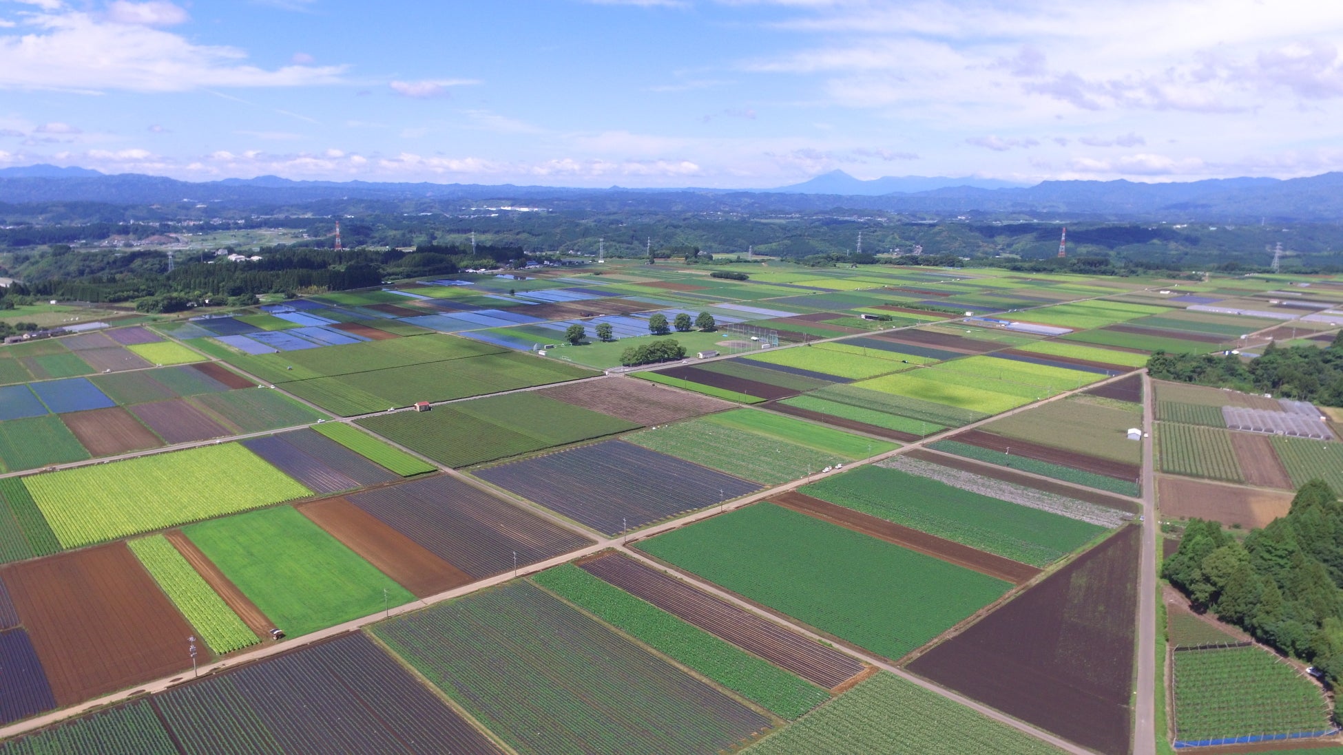 戦後80年の節目の年が近づいていますが、現在の六野原は、その広大な台地を覆いつくすようにパッチワーク状の美しい農地が広がっています。周囲にさえぎるものが無く、遠は霧島連山を望むこともできます。
